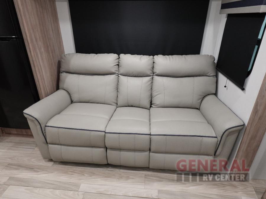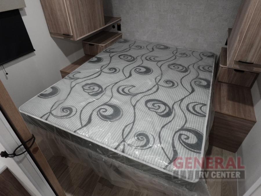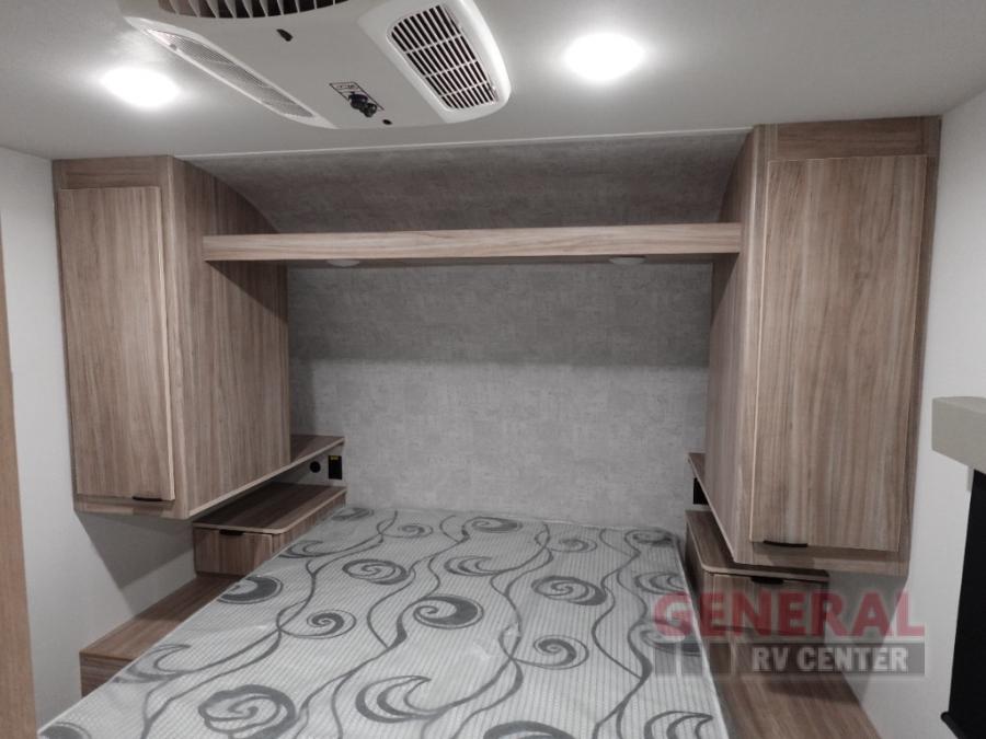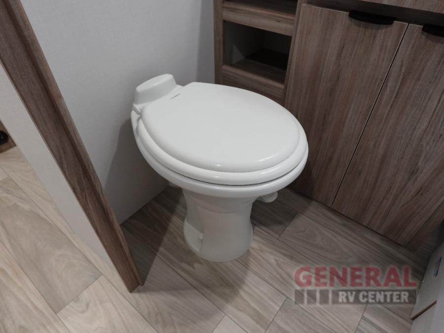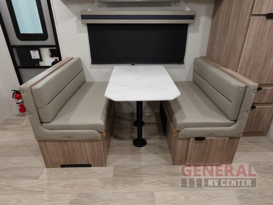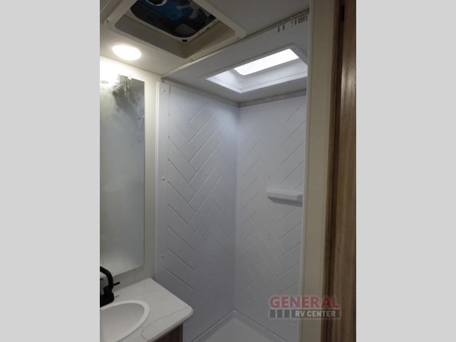 Enjoy your Access in the great outdoors! This unit features a large slide for added interior space inside. There is sleeping for two to six depending on size and furniture choices starting with the front private bedroom featuring a space saving sliding door. You can also sleep two on the optional tri-fold sofa within the slide, and the dinette opposite can be converted for one or two little ones. You will find ample storage throughout in overhead storage cabinets, under bed storage and wardrobes, plus more. The kitchen appliances are also within the large slide, plus you will find a nice size sink in the rear roadside corner with storage both above and below. A convenient rear corner bathroom allows you to skip the use of the camp facilities and enjoy cleaning up in the privacy of your own unit. Here you will find a 30" x 36" shower, porcelain toilet and a vanity with sink and corner medicine cabinet. You will also appreciate the exterior storage door within the slide and there is also convenient pass-through storage for your larger camp items to be neatly tucked away when not in use.