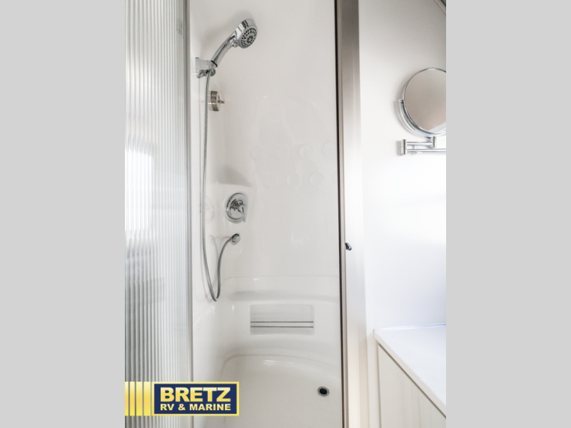 The lightweight, easy-to-maneuver Bambi travel trailer by Airstream is your ticket to outdoor fun and adventure. The panoramic front windows with blackout shades will provide natural lighting during the day, and privacy at night, and the seamless vinyl flooring will be easy to keep clean. Each model includes an efficient A/C with a heat strip, roll top overhead cabinets, and Performatex dinette cushions that are stain resistant. You will appreciate the 12V USB-A and USB-C ports to keep your devices charged, and the 24" 12V HDTV will provide entertainment when the weather isn't cooperating. The Bambi travel trailers also include a powered hitch jack with a light, roller shades, and an optional solar charging system for off-grid capabilities!