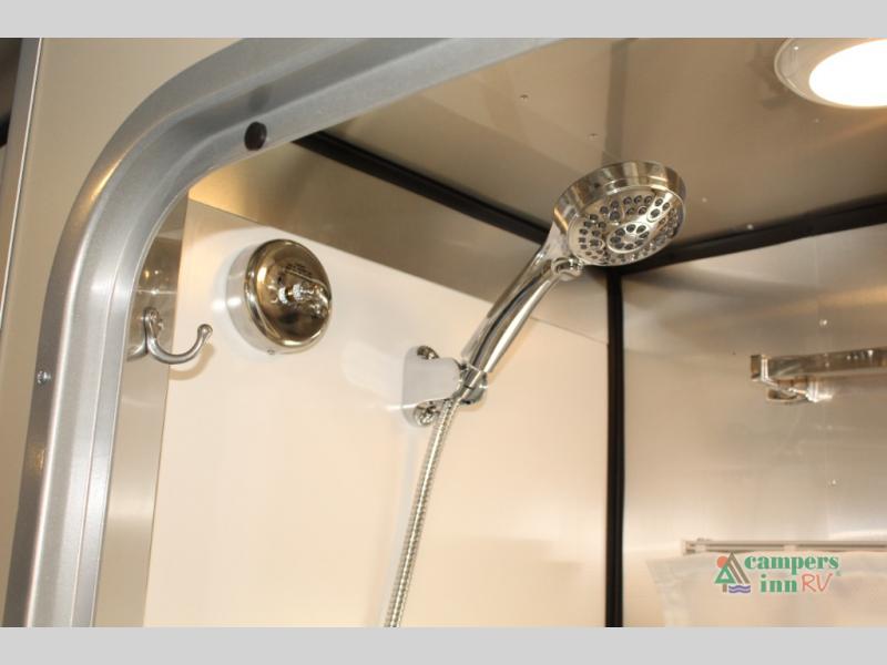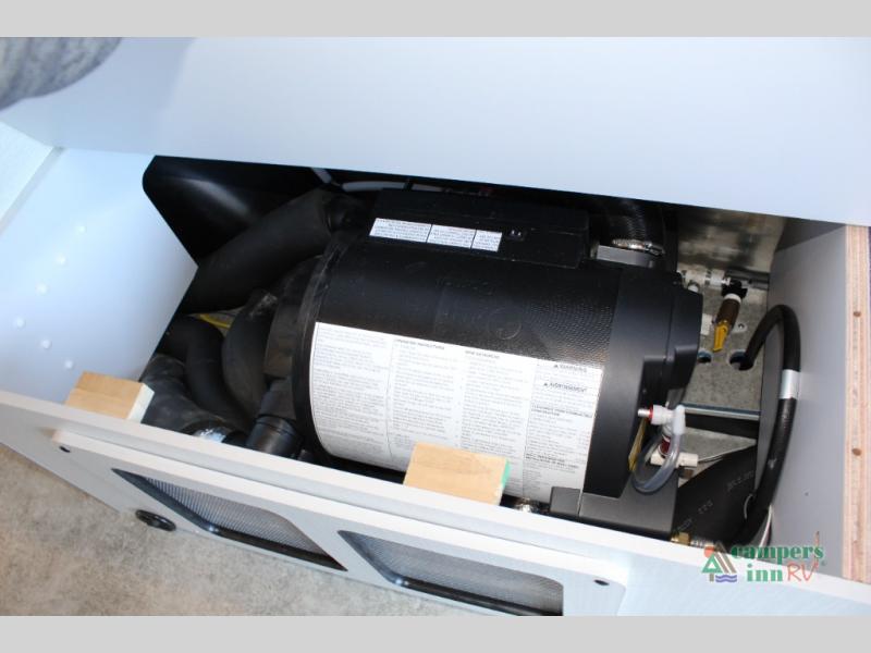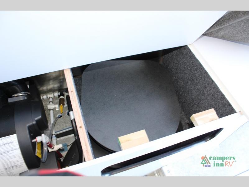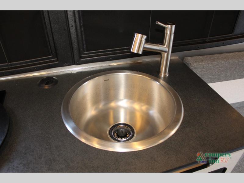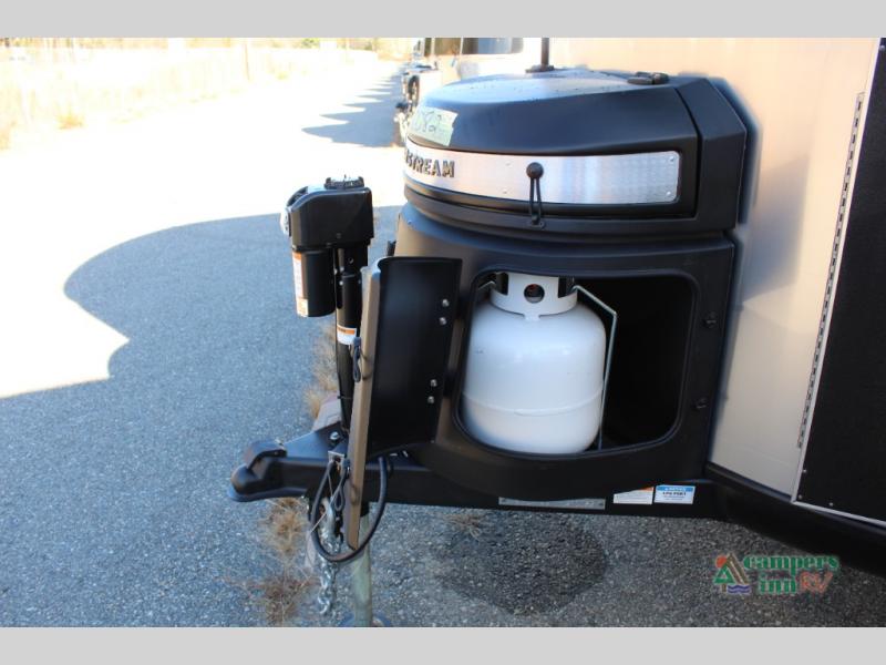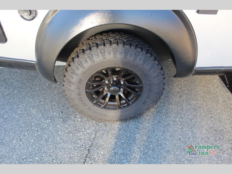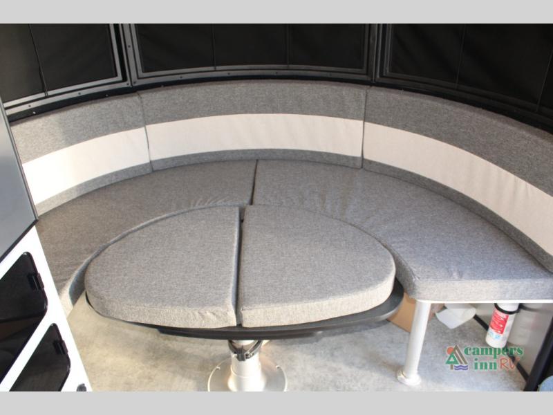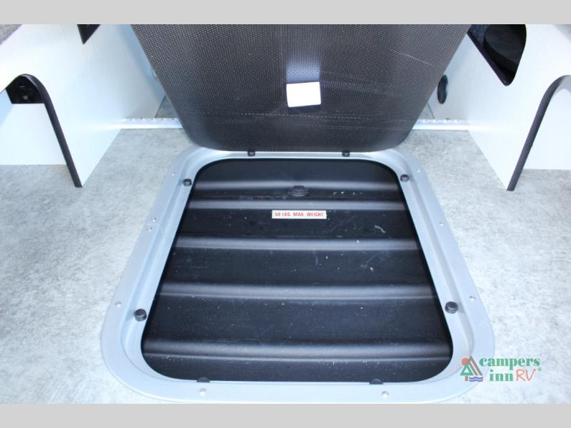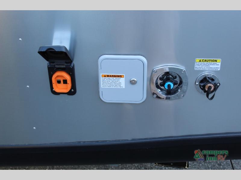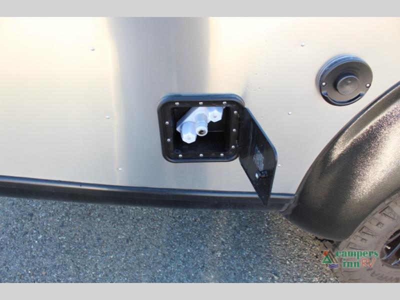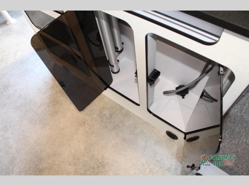 This travel trailer is ready for adventure when you are! You can easily sleep everyone when using both the rear benches and the front U-shaped dinette. The benches provide split sleeping or a half-bed on one side and a full bed that spans the back of the trailer into an 82" x 78" sleeping area. There is storage under the cushions for the two removable tables that allow you to dine, work and relax with a place for your cellphones and such. The wet bath comes complete with a shower, sink and toilet so you can rinse off from a day outdoors, the galley kitchen gives the cook a place to make warm meals and store drinks and leftovers. This Basecamp also offers front panoramic windows, a steel double entry step, a full-size spare tire, and a rear hatch door allowing you to take your snowboards, skis, and paddle boards. Enjoy all the comforts of home no matter where you travel, including a space-saving wet bath, spacious kitchen, and two living spaces that quickly convert to sleeping areas. From the optional air conditioner and optional microwave to the water heater, furnace, and induction cooktop, the appliances in Basecamp Xe are electric-first.