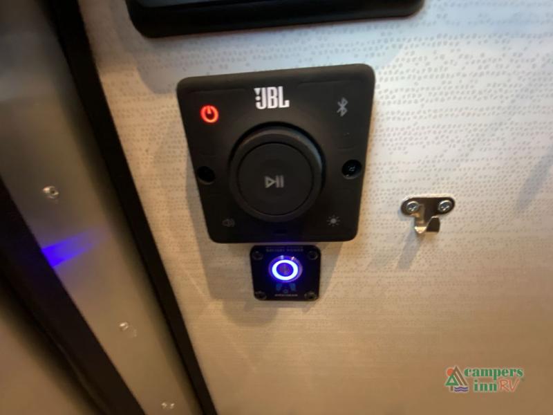You can go farther than ever with the Basecamp Xe by Airstream! This travel tailer is powered by a 30A electrical system with a 3,000W inverter, a 10.3kWh lithium Battle Born battery pack and an impressive 600-watts of roof-mounted solar panels. There is coated stone guard protection plus a 3-inch lift kit with off-road tires that will help protect against rock and debris when traveling tough terrain. Head inside to find all the comforts of home, including a space-saving wet bath, a flexible living space, blackout shades, and seamless vinyl flooring. There are also USB ports to keep your electronics charged plus a JBL Audio stereo with Bluetooth connectivity and three speakers so you can listen to your favorite tunes!