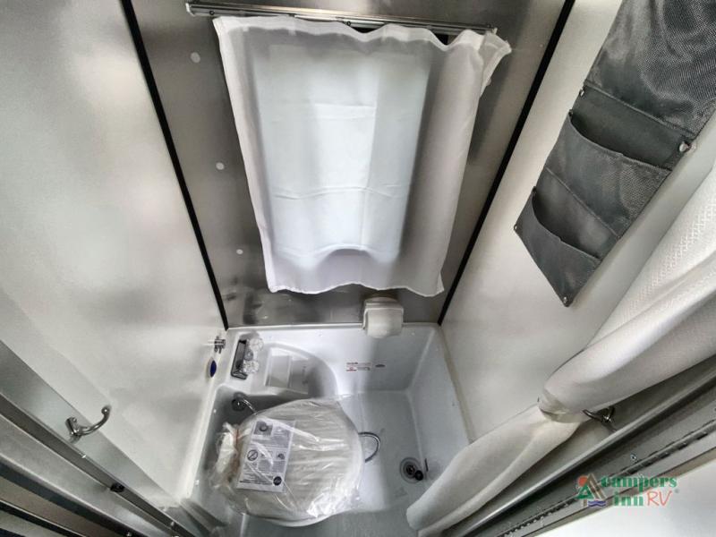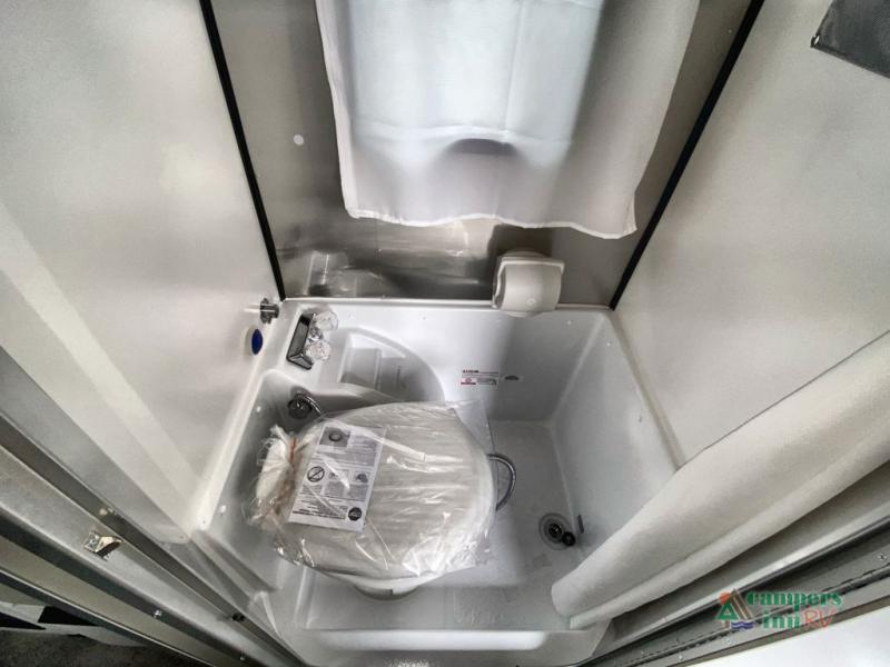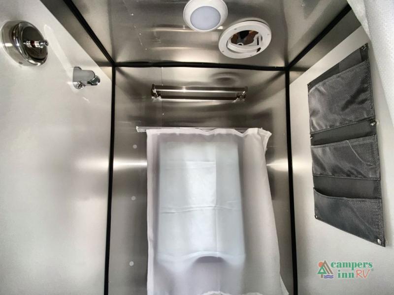 The onboard wet bath is designed for convenience in remote locations, offering a shower, toilet, and durable surfaces that simplify cleaning and maintenance. With upgraded tank capacities, solar options, and enhanced battery systems, the 20XE is built to thrive when you venture off the beaten path.