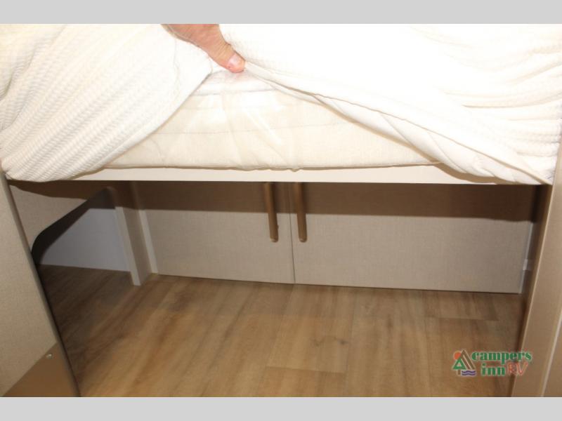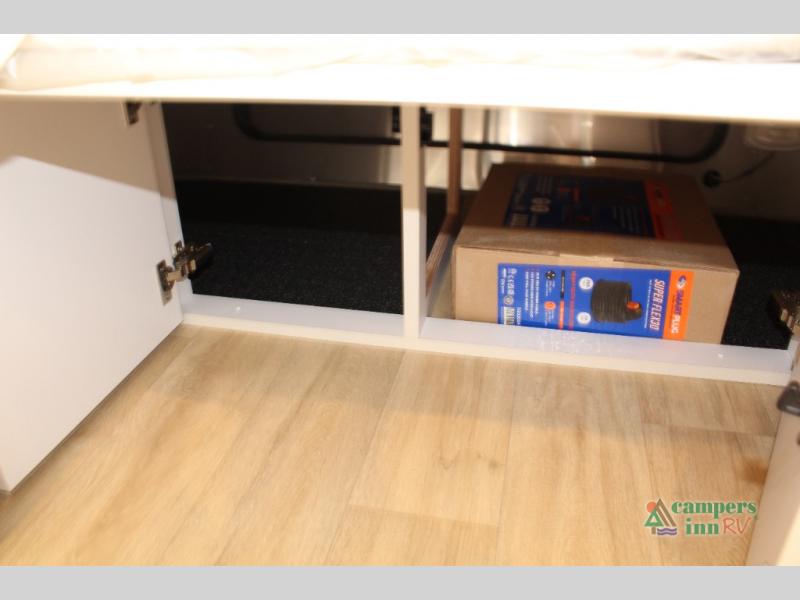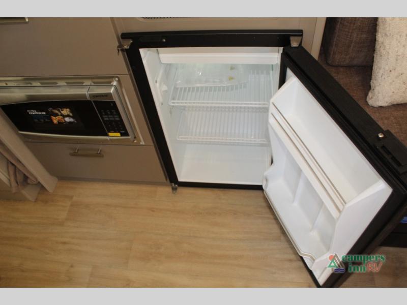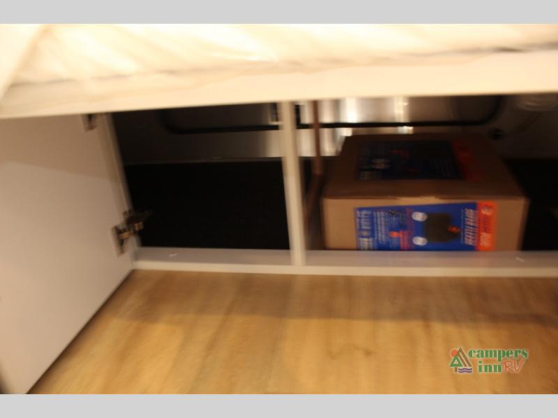 This easy-to-tow Caravel travel trailer is super capable and super durable! The kitchen features a two-burner gas cooktop, a stainless steel sink, a microwave, and a Baraldi cooking vent with light. You'll find storage space in the hanging closet next to the kitchen and the under-bed storage. And the pillowtop memory foam mattress is going to provide you with a very comfortable night of sleep.