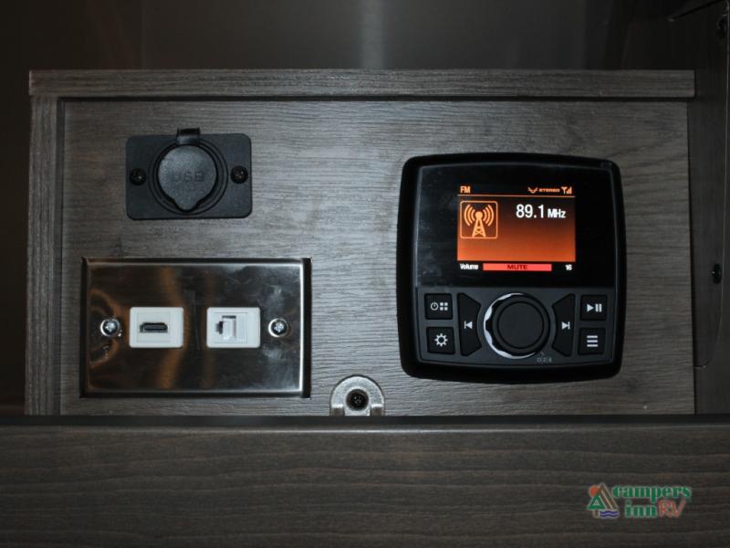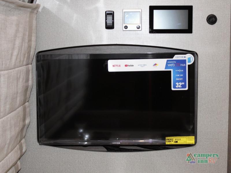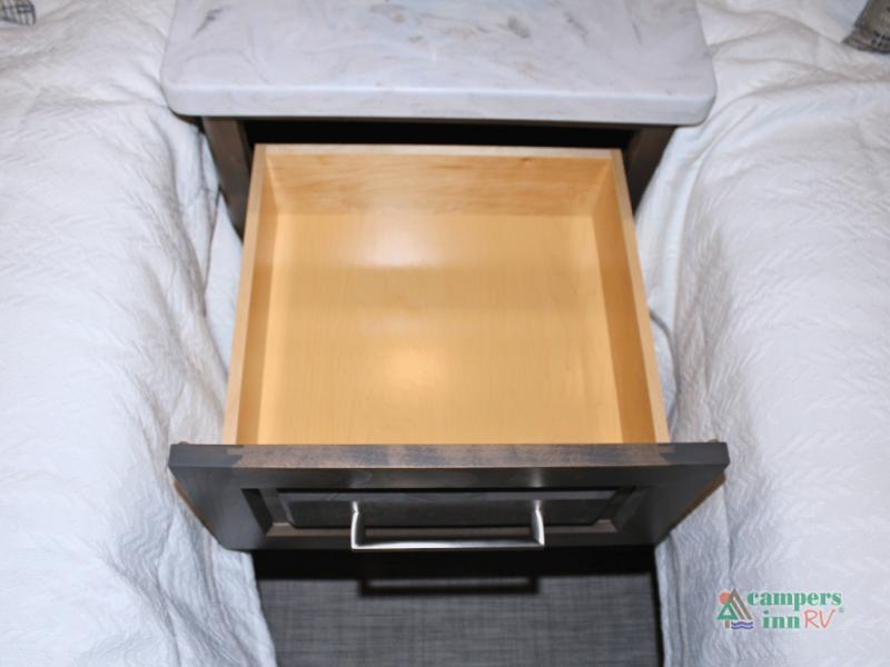 The powered dinette and front lounge easily transition from dining or relaxing to sleeping areas at the push of a button. Everything is designed to maximize comfort and flexibility—whether you're entertaining or winding down.
