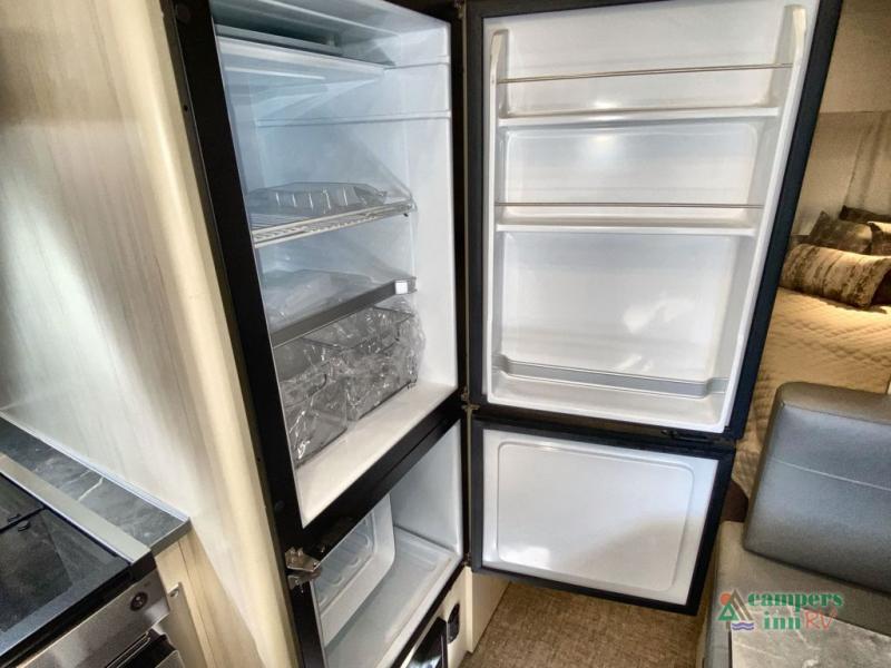 Step inside and experience an open, inviting layout that maximizes every inch of space. The front twin beds offer superior flexibility and comfort, giving partners or travel companions room to stretch out and move independently. This layout also enhances nighttime convenience, increases storage opportunities under each bed, and improves towing balance due to even weight distribution.
