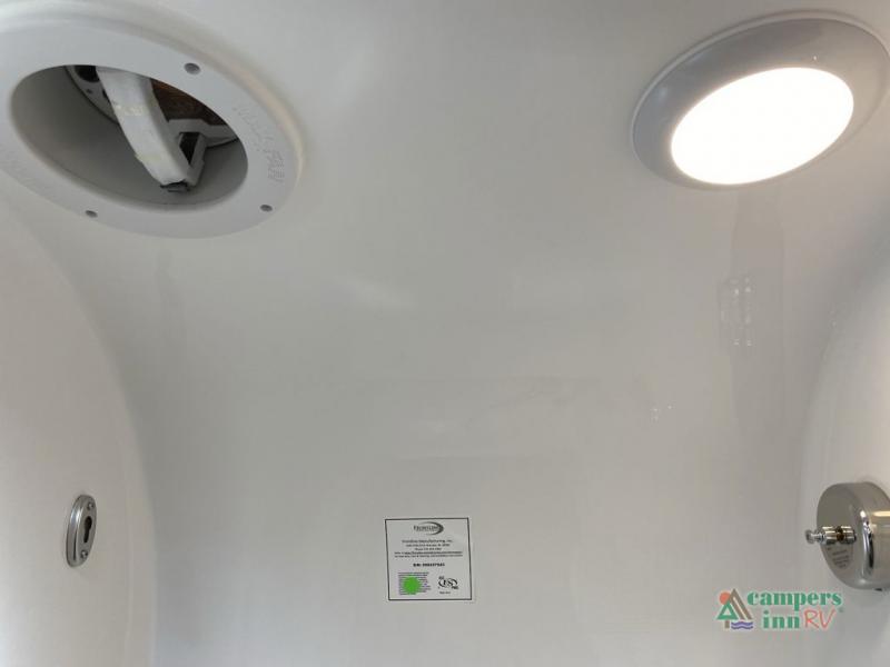 Travel with your family and friends to see new places and experience how comfortable camping can be in this trailer! Whether you are dining at the booth dinette that seats four or relaxing up front on the L-shaped sofa, you can visit while watching the TV or talking with the cook in the galley kitchen. The split bathroom offers a toilet and vanity along one side and a shower with its own door on the other. The rear bedroom with two twin beds will provide you with your own space at night!
