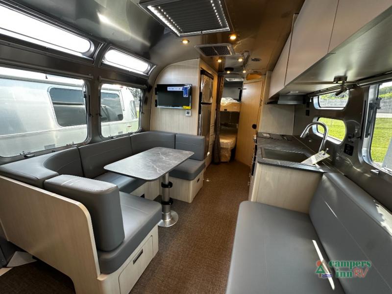 The Flying Cloud 30FBBT features Airstream’s iconic aluminum exterior and panoramic front windows, delivering a sleek, durable, and stylish presence. Inside, the front bedroom suite provides a private retreat with a queen bed, while the rear bunk area offers flexible sleeping arrangements for family or guests. The convertible dinette and lounge spaces maximize functionality and comfort.
