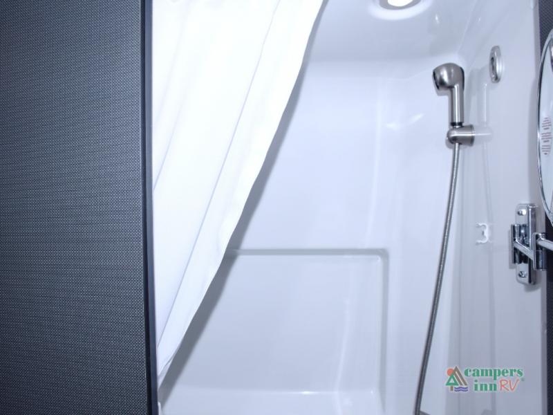 - Spacious Interior with Thoughtful Design: Step inside the spacious interior and discover a beautifully designed living area with ample headroom, a comfortable seating area, and high-end materials throughout. With modern conveniences like a wet bath, full kitchen, convertible sleeping space, and plenty of storage, the 19X provides the perfect balance of comfort and functionality.