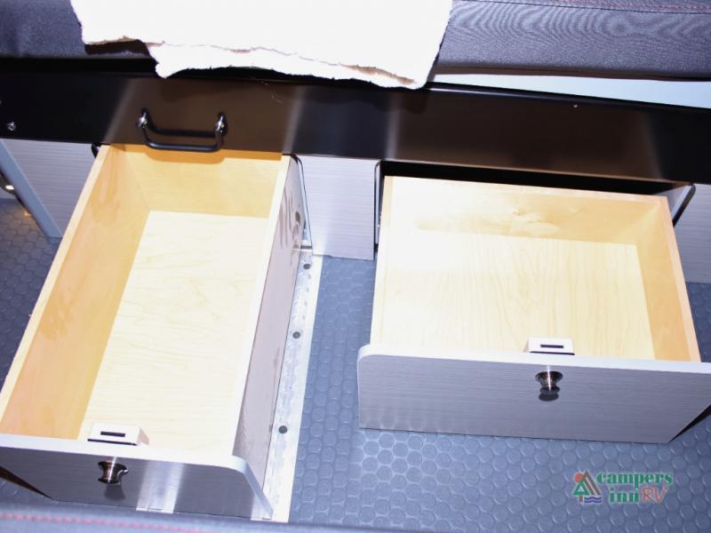 - Comfortable Sleeping Space: The rear sofa easily converts into a comfortable bed, perfect for restful nights after a long day of exploring. Airstream’s commitment to quality means you’ll sleep in comfort with premium materials and a design that maximizes space without sacrificing luxury.