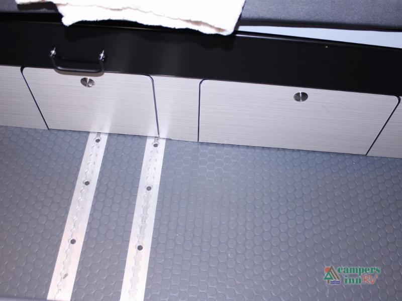 This motorhome is set apart with its flexibility! The bench seating area combined with multiple table mounts make for the perfect gathering spot to play games and enjoy meals prepared with the induction cooktop, sink with integrated cover, .7 cu. ft. locker microwave, 3.1 cu. ft. refrigerator/.33 cu. ft. freezer, and soft close drawers with locking hardware for your utensils. The swiveling captain's chairs spin around to face the interior area for more seating options. You can effortlessly load up your bikes, kayaks, and fishing gear with the L-track system and know that it will stay in place. The Flex Bed System allows you to configure either a pair of twins or a 74" x 70" queen. Don't worry about searching for public facilities with the European-style wet bath!