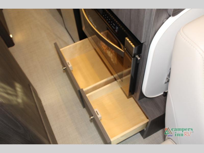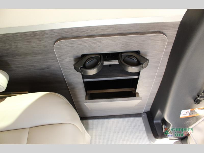 You'll be ready for just about anything with this Interstate 24X Class B diesel motorhome! This coach has some great storage solutions with the aluminum aircraft L-track storage system, lower storage compartments under the seating, oversized center aisle storage for kayaks or bikes, a pantry with built-in drawers and shelves, and a security safe. Nothing will be more convenient to have while traveling on the road than the heated wet bath with a retractable clothesline and towel rack, and the galley kitchen with cooktop, sink, and refrigerator. The blackout privacy and light shades are another useful feature that will allow you to block out the light while you sleep.