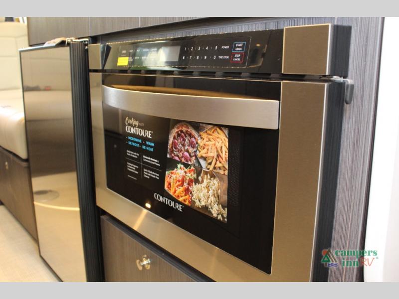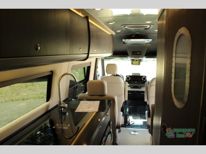 For the true adventurer, there isn't much that quite compares to the Airstream Interstate 24X Class B diesel motorhome! This brand is exceptional for off-grid tours because of its performance capabilities, air ride suspension, and all-season all-terrain rugged tires. There is also a black roof rack, exterior gear wash station, and an off-road front HD LED light bar. The cockpit has an MBUX infotainment system and premium digital media receiver with Bluetooth connectivity for the tech enthusiast, and you can also add an optional front bed system to the cockpit if you need another sleeping space. You'll also love the adjustable LED lighting, Ultraleather seating, solid surface galley countertop with edge band lighting, and many more interior comforts!