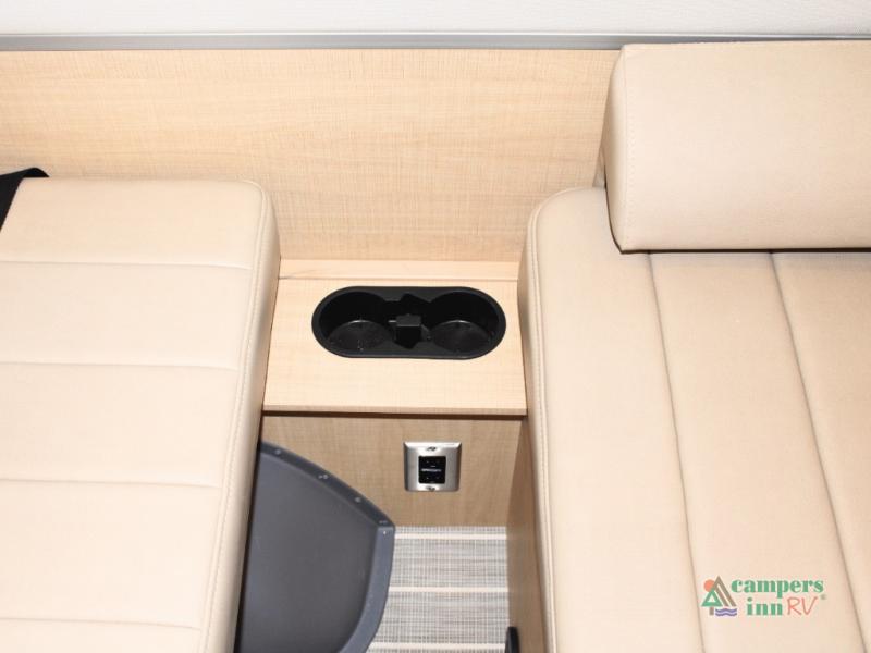 Step inside and feel the difference. The interior reflects Tommy Bahama’s tropical elegance, with rich textures, soothing colors, and upscale finishes that create an atmosphere of effortless relaxation. The Ultraleather seating, custom-embroidered Tommy Bahama accents, and Corian countertops evoke the comfort of a beachfront resort.