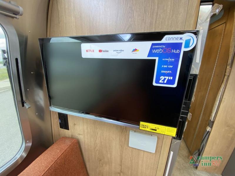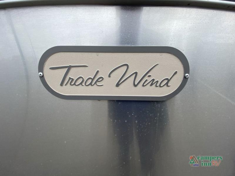 The Trade Wind is Airstream's most powerful travel trailer in its lineup and it's easy to see why! There is a solar charging system with an interior monitor, heated lithium batteries with remote monitoring, plus a massive internal battery pack to keep your adventures going. You will love how easy it will be to maneuver roads thanks to the 3" suspension lift kit and rugged Goodyear Wrangler Workhorse tires, plus there is a rear-view monitoring system to make parking easier than ever. All the comforts of home are included, like a functional kitchen, onboard bathroom, and plenty of storage for belongings and camp gear. The Smart TVs with Bluetooth will provide entertainment on those rainy days, or you can just enjoy the view with panoramic windows!