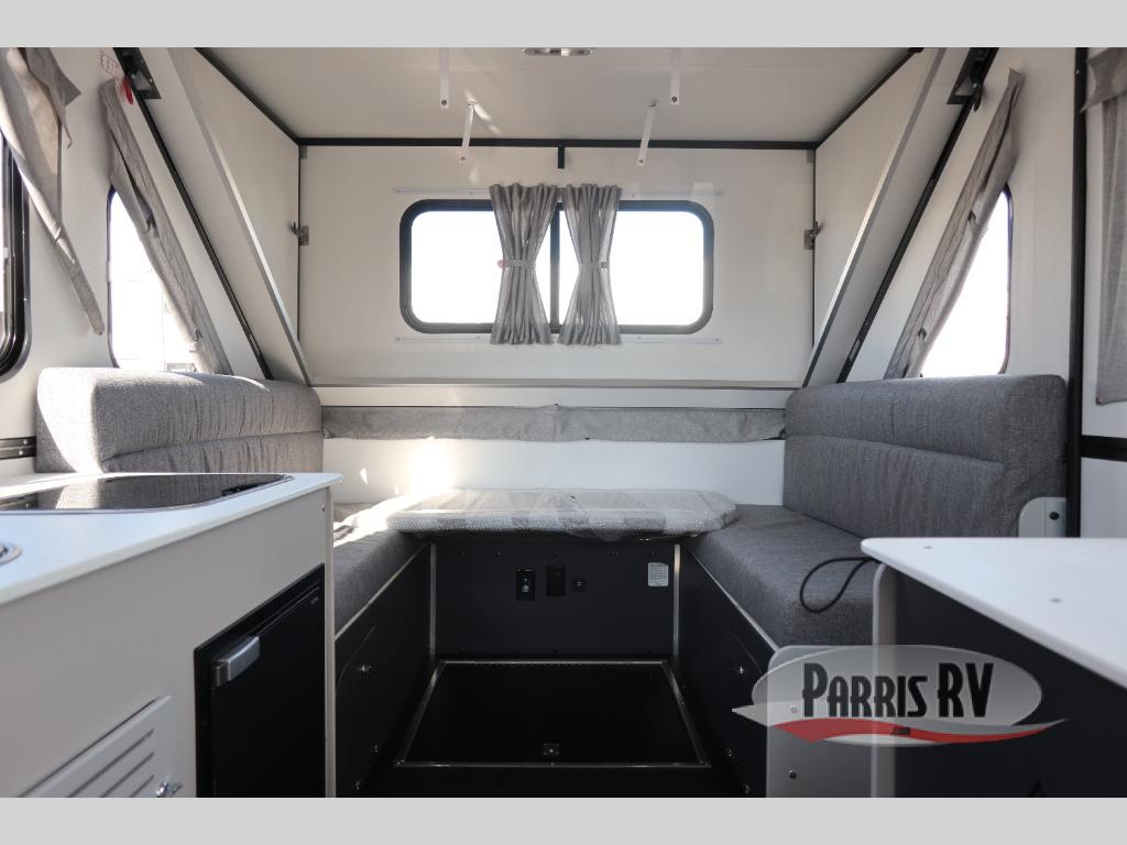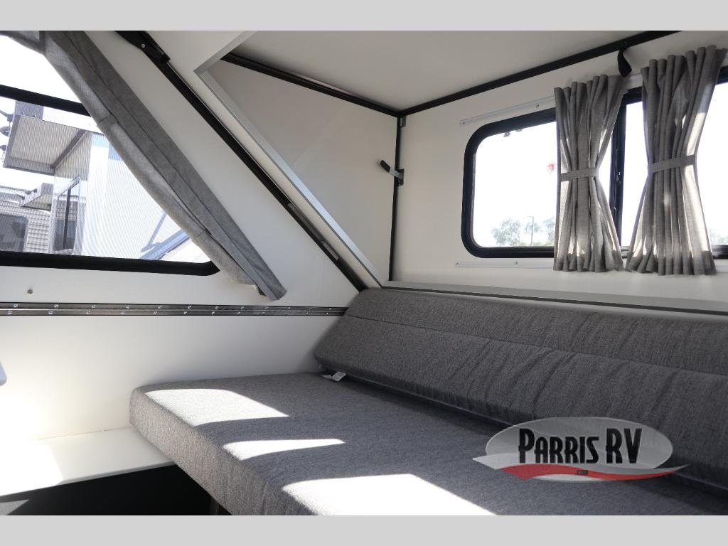 The Evolution A-frame camper by ALiner is coming to you with residential features and solid construction materials. You'll love the slate gray exterior, and the Azdel composite panels included help prolong the life of your camper. There are 15" off-road tires with graphics package, LED running lights, exterior baggage doors, plus many more exterior conveniences. The Evolution A-Frame camper comes with commercial grade, raised coin polyvinyl flooring, SIMONA BOATBOARD interior cabinets and furniture, and three indoor electrical outlets to name a few interior comforts.