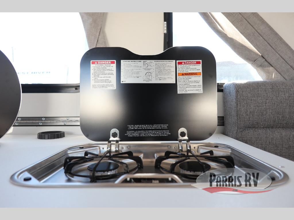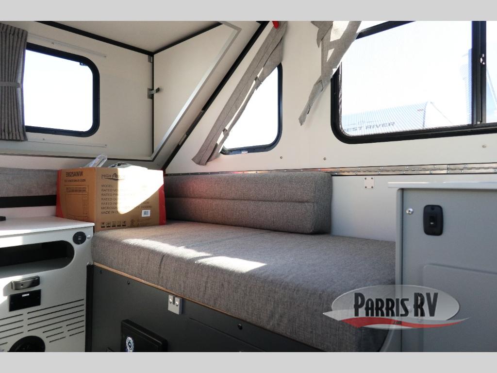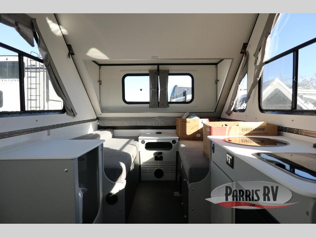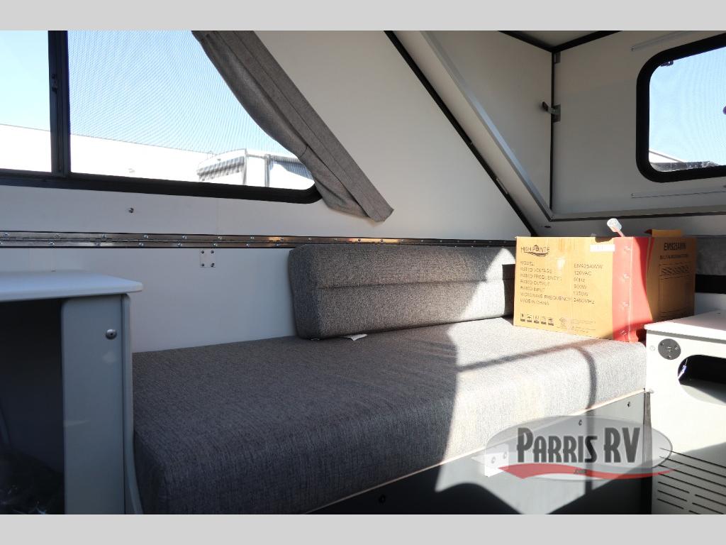 Two to four, depending on size can easily camp in this twin bed model featuring two 30" x 80" twin beds in the rear of the unit. There is a two-burner cooktop to make lunch on and a 3.2 cu. ft. 12V refrigerator for your cold items! The dinette converts to a 40" x 80" bed for one or two more tired campers. You'll find storage space inside for your things and the cassette toilet is quite handy especially at night. This model also has a dry weight of 2,400 lbs. for easy towing!