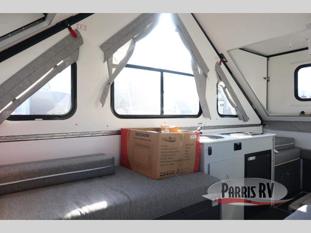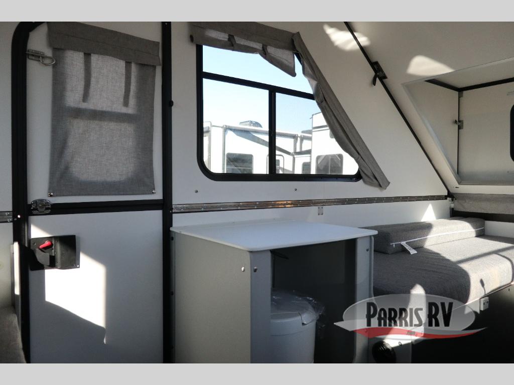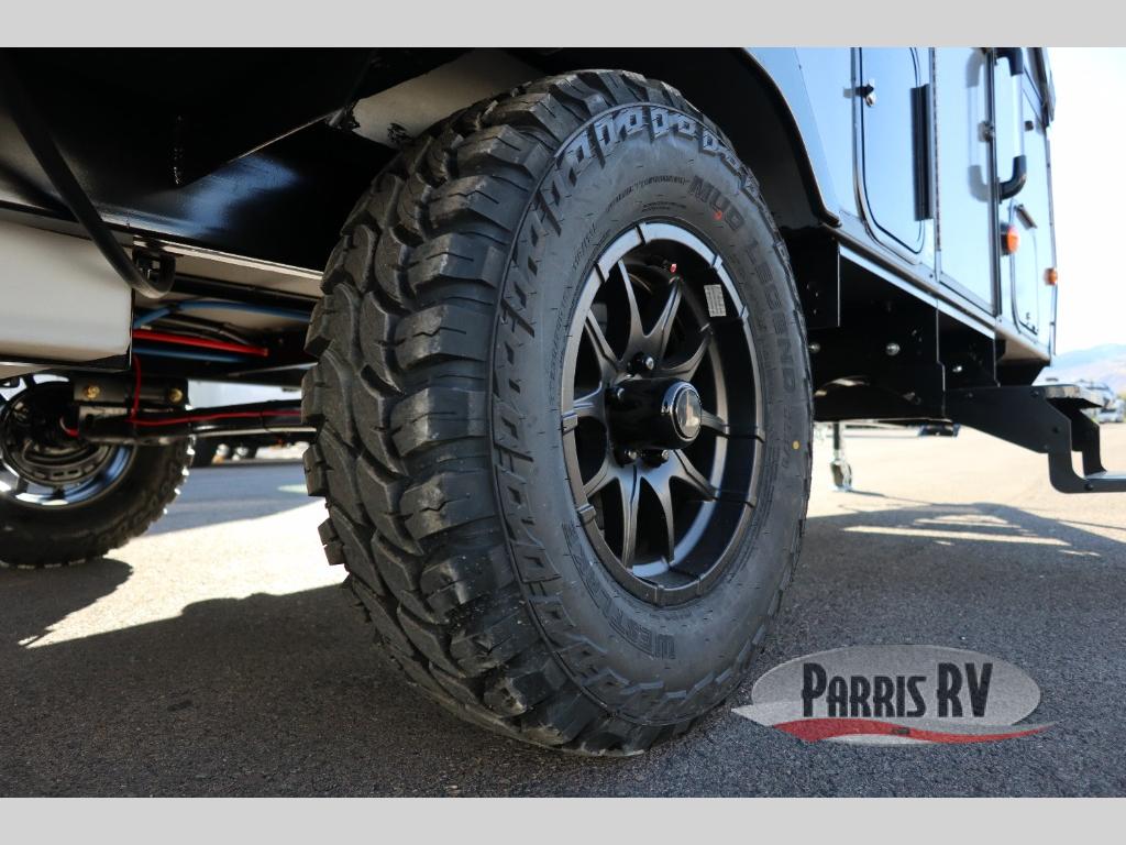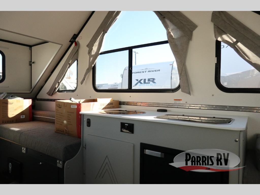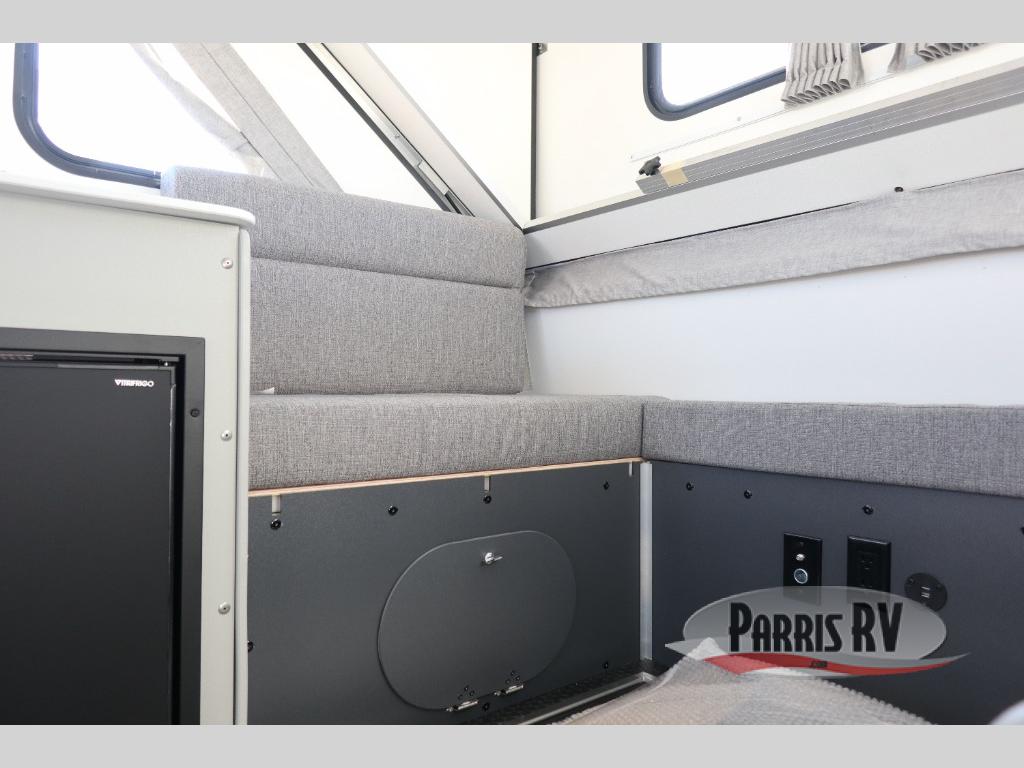 The Evolution A-frame camper by Aliner is coming to you with residential features and solid construction materials. You'll love the slate gray exterior, aluminum wheels, and the Azdel composite panels to help prolong the life of your camper. There are LED running lights, exterior baggage doors, and four stabilizer jacks to help keep your camper secure. You will also appreciate the keyless entry, the dual LP tanks with a cover, and the 200-watt solar panel on the front dormer for some off-grid power. The lift kit and 15" off-road tires add 3" to the height, allowing you to explore more roads, and you'll find many interior comforts to make you feel right at home!