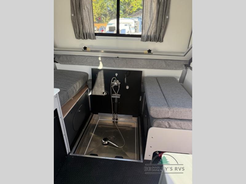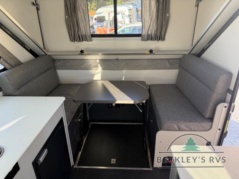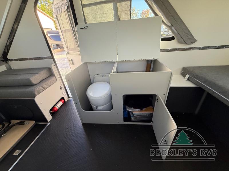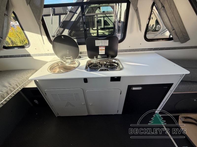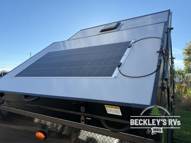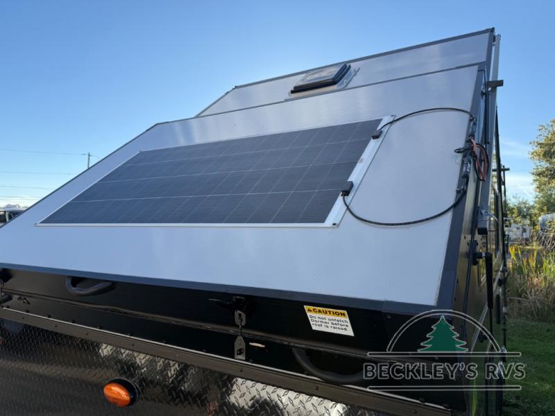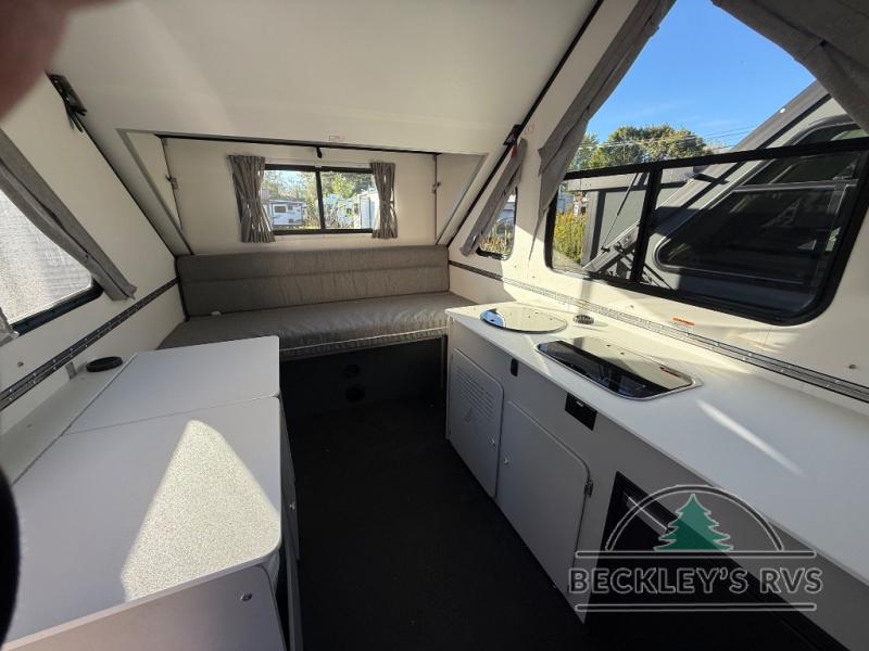 You'll love the amount of convenience and comfort found in this A-frame camper! There is a booth dinette up front that convert to a 40" x 80" bed, along with a rear sofa that converts to a 60" x 80" queen-size bed. Prepare your best meals on the two-burner cooktop, use the sink to clean up, and store cold items in the 3.2 cu. ft. 12V refrigerator. This unit also includes a 200-watt solar panel on the front dormer, and an optional 200-watt solar panel can be added to the rear dormer for even more off-grid capabilities!