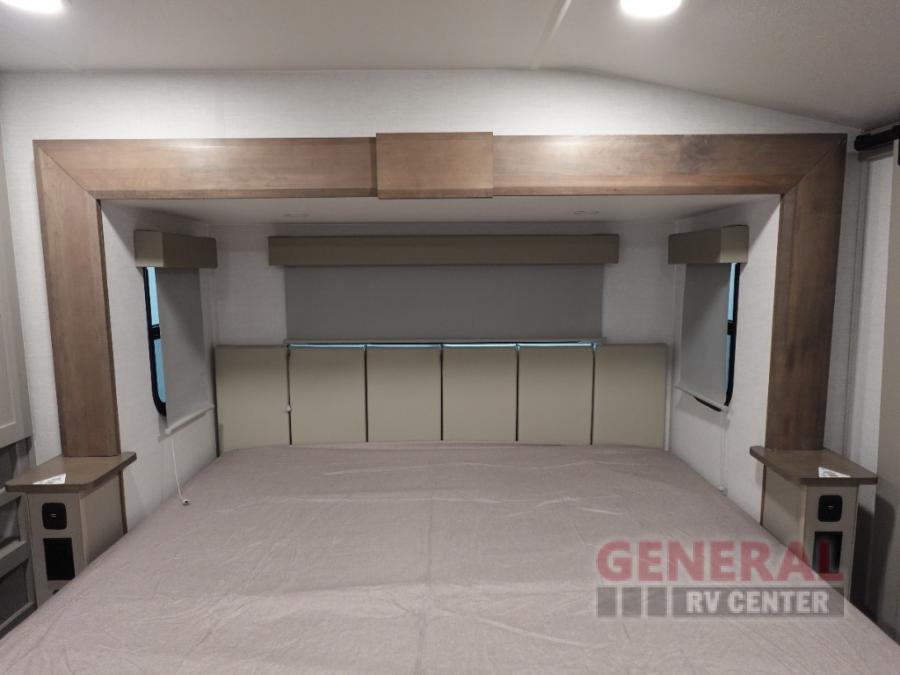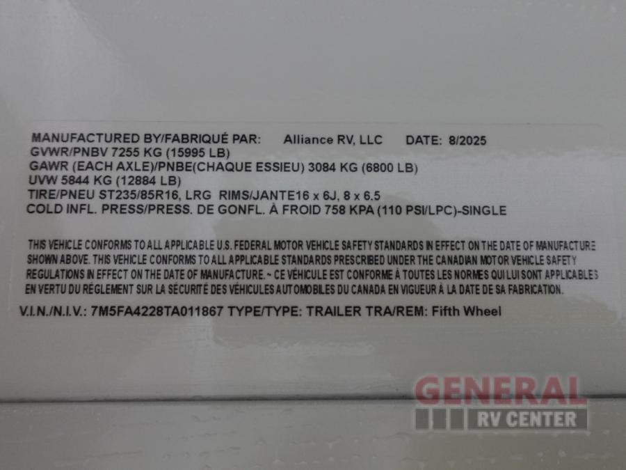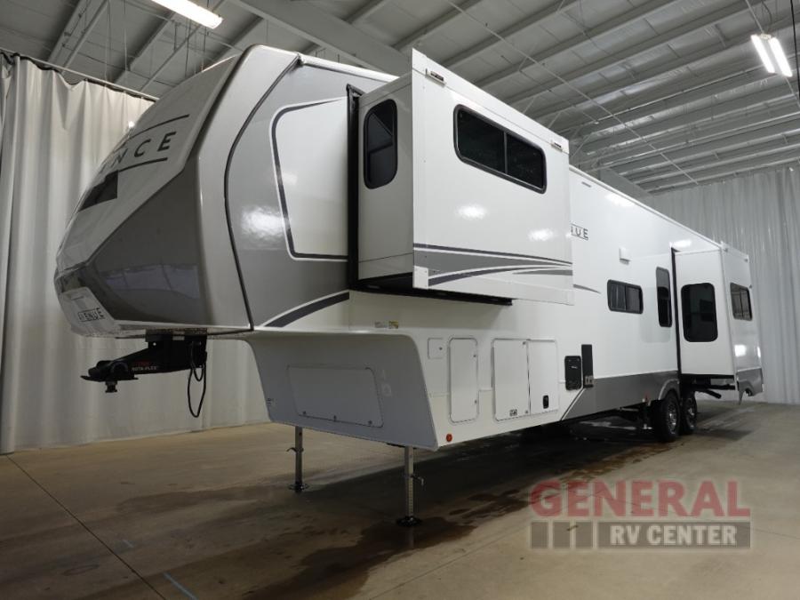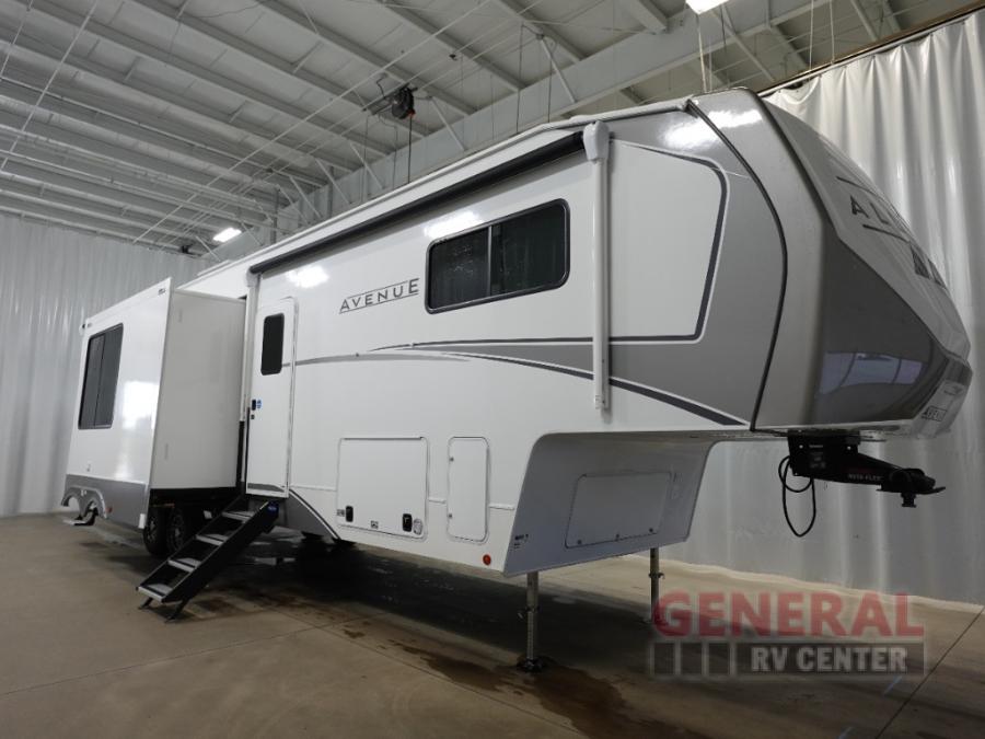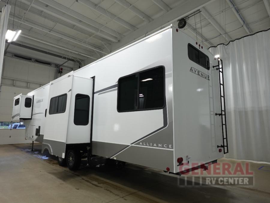 With any Avenue fifth wheel or travel trailer by Alliance RV, you will enjoy more interior space provided by the 8' 5" wide-body construction, and a long list of luxury features. Each is built with Azdel composite sidewalls both inside and out, along with a PVC roof for added strength. There are innovative storage solutions that include hidden storage behind the TV, within end tables and ottomans, and more. Since these units feature no carpet throughout, cleaning will be easier than ever, and there are flush floor slides throughout for seamless living spaces. The Avenue also comes with the OTG Solar Package with a 400 watt solar panel, inverter prep, multiple outlets, and more to keep you charged up!