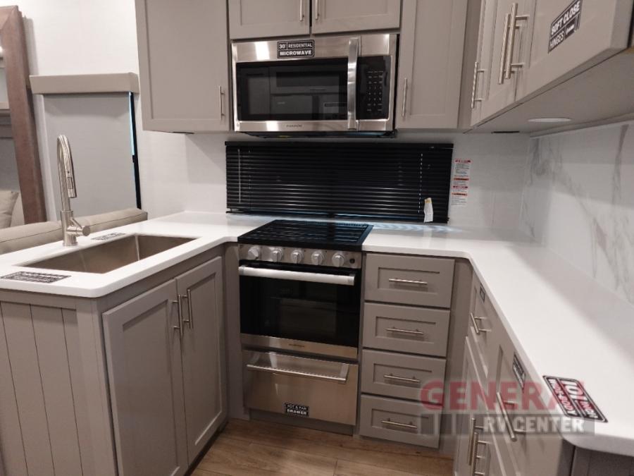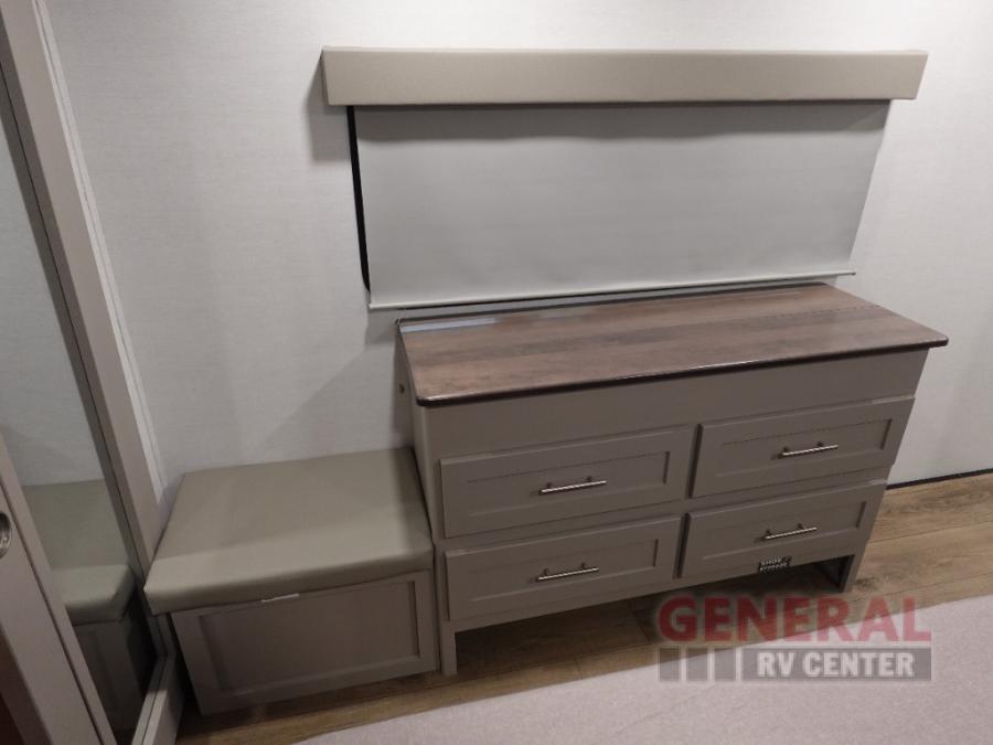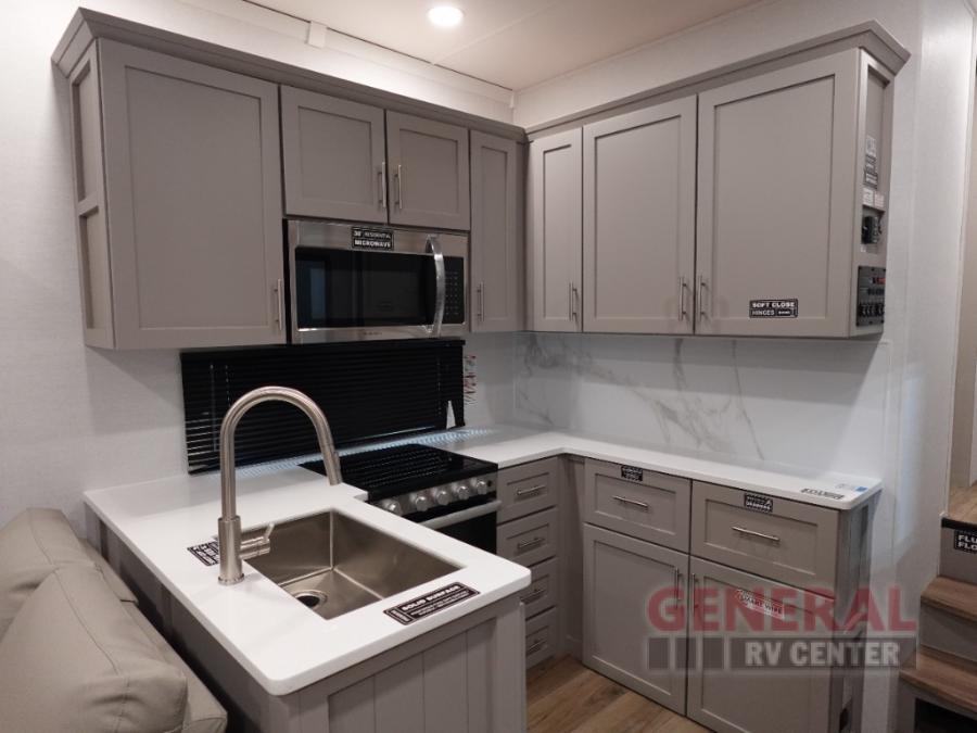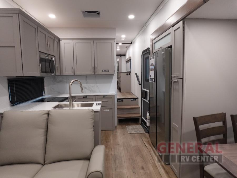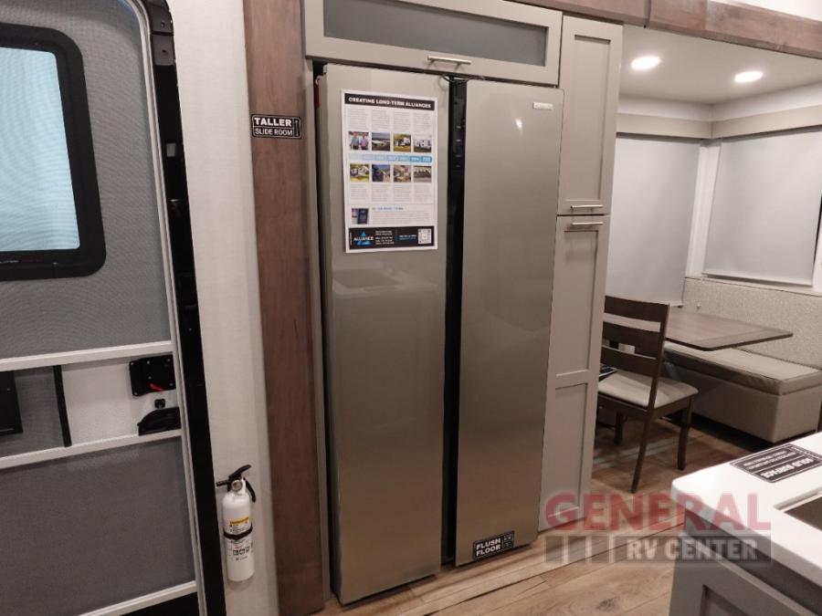 With any Avenue fifth wheel or travel trailer by Alliance RV, you will enjoy more interior space provided by the 8' 5" wide-body construction, and a long list of luxury features. Each is built with Azdel composite sidewalls both inside and out, along with a PVC roof for added strength. There are innovative storage solutions that include hidden storage behind the TV, within end tables and ottomans, and more. Since these units feature no carpet throughout, cleaning will be easier than ever, and there are flush floor slides throughout for seamless living spaces. The Avenue also comes with the OTG Solar Package with a 400 watt solar panel, inverter prep, multiple outlets, and more to keep you charged up!