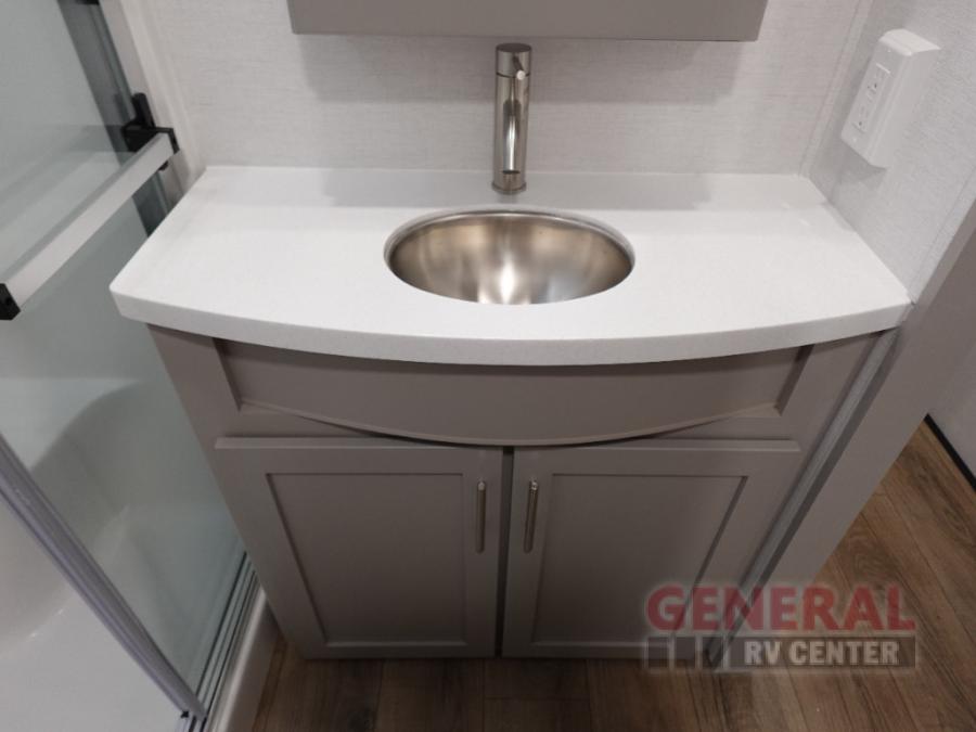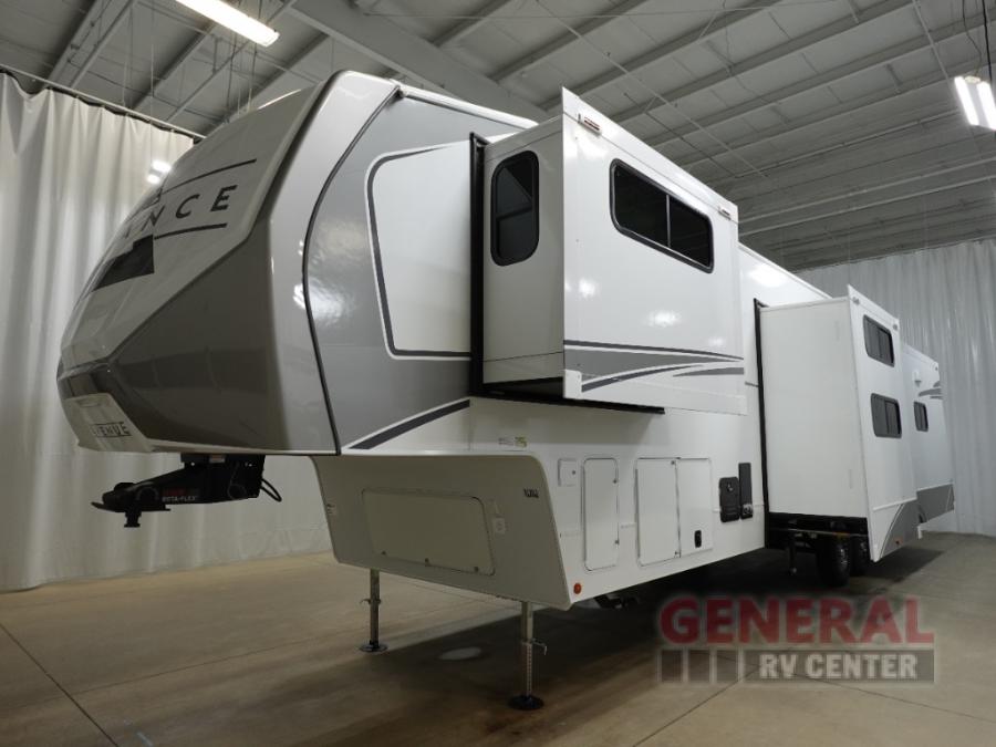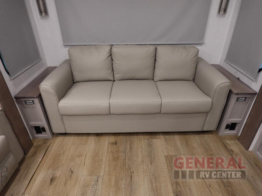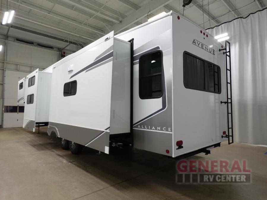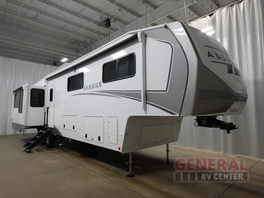 With any Avenue fifth wheel or travel trailer by Alliance RV, you will enjoy more interior space provided by the 8' 5" wide-body construction, and a long list of luxury features. Each is built with Azdel composite sidewalls both inside and out, along with a PVC roof for added strength. There are innovative storage solutions that include hidden storage behind the TV, within end tables and ottomans, and more. Since these units feature no carpet throughout, cleaning will be easier than ever, and there are flush floor slides throughout for seamless living spaces. The Avenue also comes with the OTG Solar Package with a 400 watt solar panel, inverter prep, multiple outlets, and more to keep you charged up!