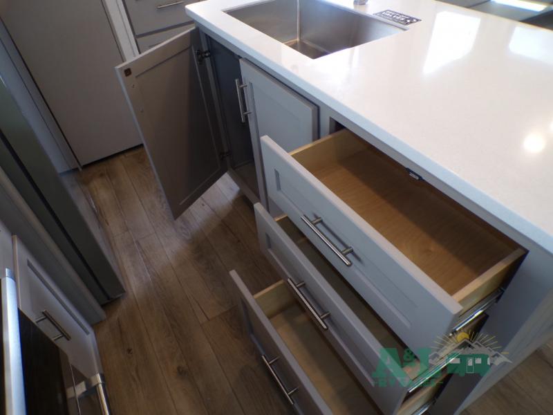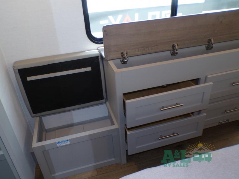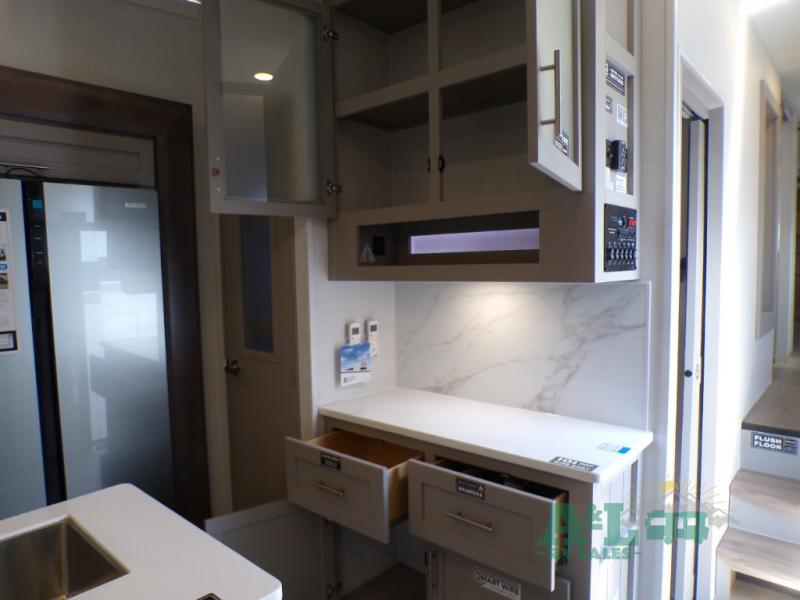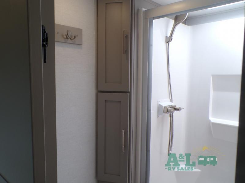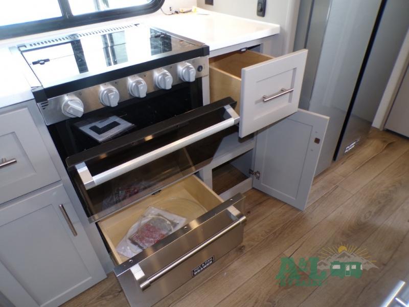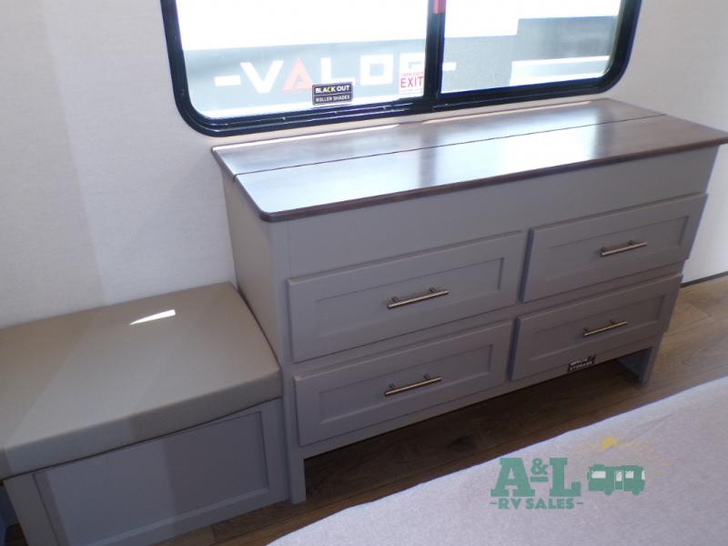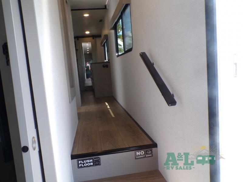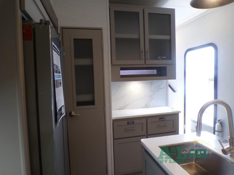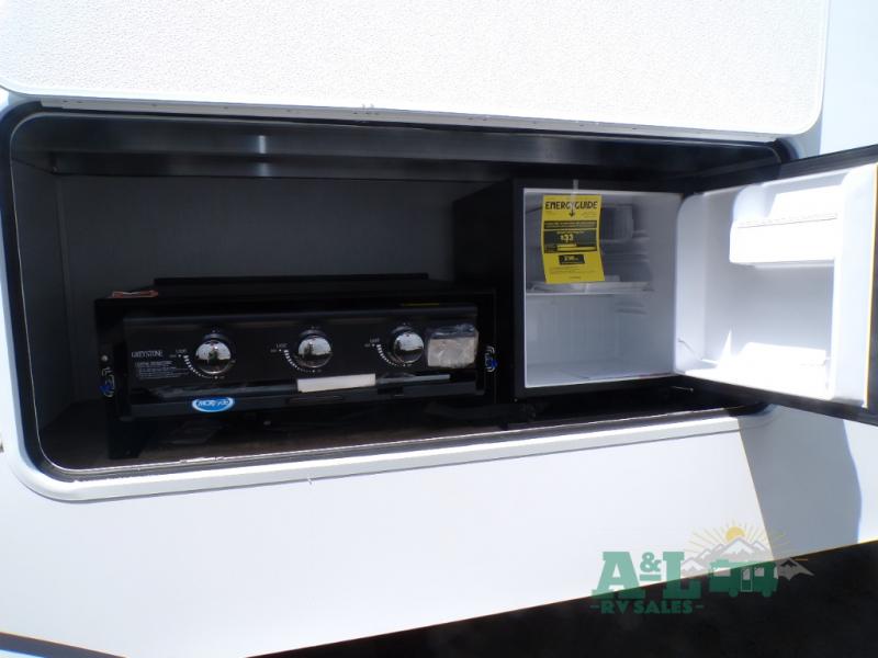 With any Avenue fifth wheel or travel trailer by Alliance RV, you will enjoy more interior space provided by the 8' 5" wide-body construction, and a long list of luxury features. Each is built with Azdel composite sidewalls both inside and out, along with a PVC roof for added strength. There are innovative storage solutions that include hidden storage behind the TV, within end tables and ottomans, and more. Since these units feature no carpet throughout, cleaning will be easier than ever, and there are flush floor slides throughout for seamless living spaces. The Avenue also comes with the OTG Solar Package with a 400 watt solar panel, inverter prep, multiple outlets, and more to keep you charged up!