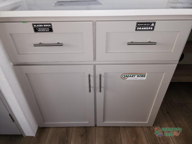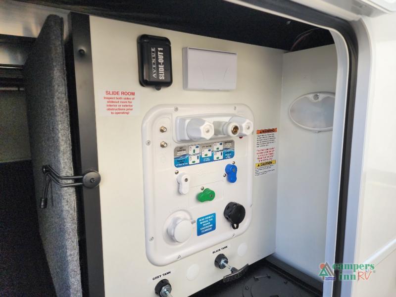 A benchmark chassis creates a space saver upper deck with each one of these Avenue All-Access fifth wheels by Alliance RV! The 101 in. wide-body construction gives you more room to walk around and the flush slide out floors throughout prevent any tripping. There are Azdel composite sidewalls inside and out, and a seamless fully walkable PVC roof for extreme durability and zero maintenance. You are sure to love no carpet throughout making each Avenue All-Access easy to clean and allergen free, not to mention pet friendly. You can maximize your space throughout with innovative storage solutions like the hidden storage behind the TV, inside the end tables, ottoman, and dinette chairs. These units also include the OTG Solar Package with a 200 watt solar panel, 15 amp MPPT charger, multiple outlets, and more to keep you powered up!