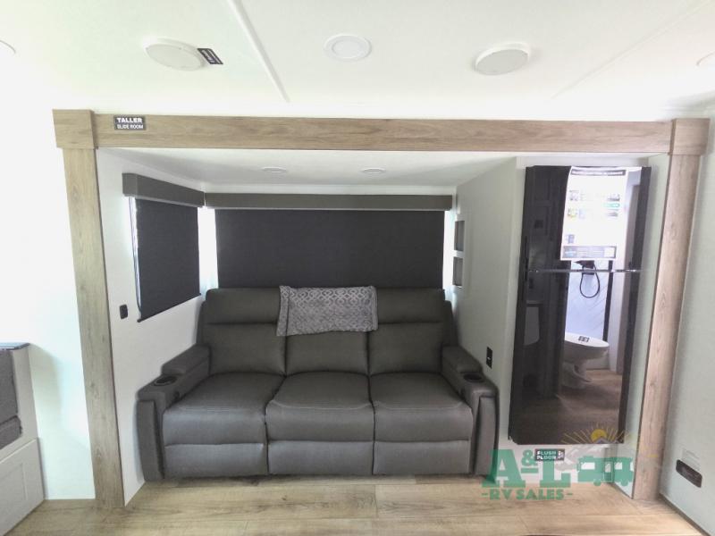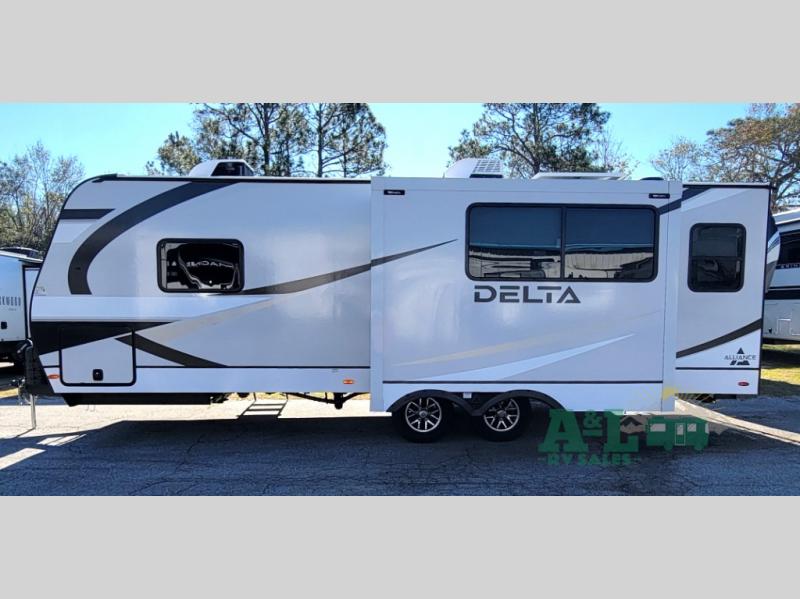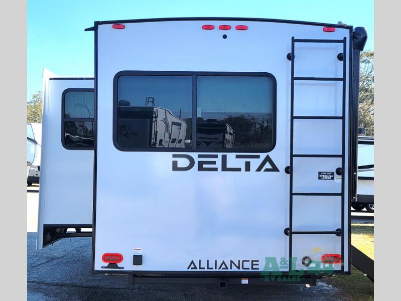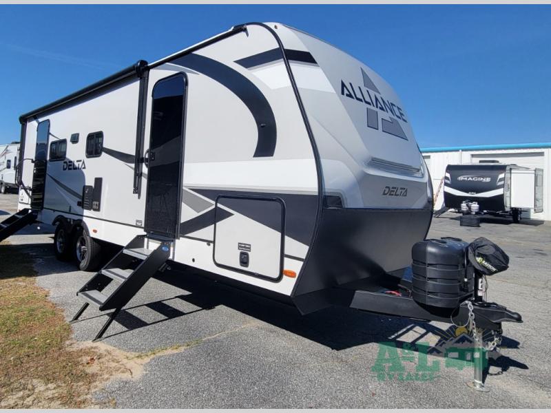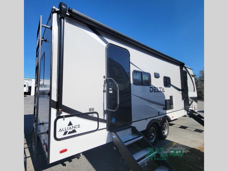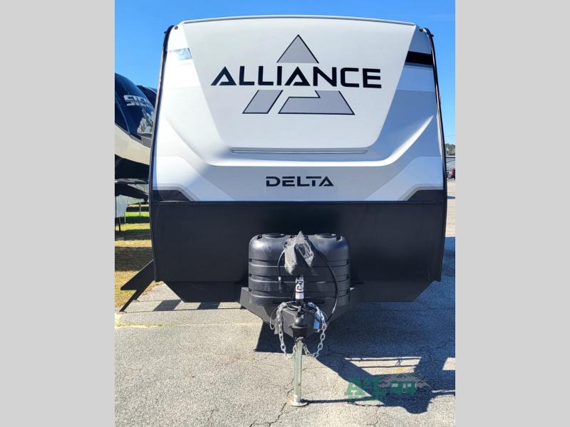 Form and function works together with every one of these Alliance RV Delta travel trailers! They are built with a walk-on roof with a seamless PVC roof covering, Mylar reinforced exterior seals, and a heated and enclosed underbelly to protect your unit in all seasons. The commercial grade vinyl flooring will be easy to clean and the oversized atrium windows throughout let in plenty of natural sunlight. With 62 cu. ft. of drop frame pass-through storage, you can bring along all of your essential camping gear plus it has USB charging for more convenience. There are many at home interior conveniences including a Bluetooth speaker, USB charging throughout, and even a pull-out kitchen trash can. Come find your favorite model today!