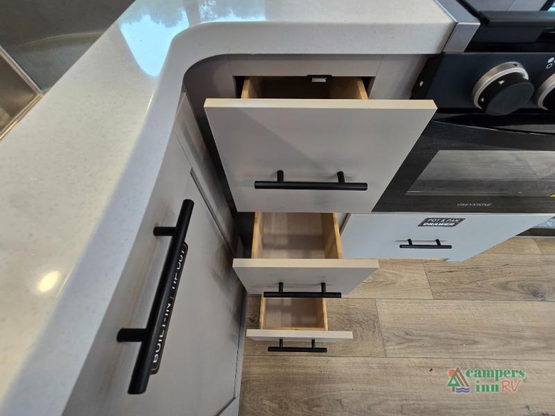 62 cu. ft. drop frame pass-through storage = plenty of space for chairs, coolers, gear.