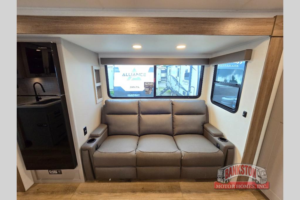 Form and function works together with every one of these Alliance RV Delta travel trailers! They are built with a walk-on roof with a seamless PVC roof covering, Mylar reinforced exterior seals, and a heated and enclosed underbelly to protect your unit in all seasons. The commercial grade vinyl flooring will be easy to clean and the oversized atrium windows throughout let in plenty of natural sunlight. With 62 cu. ft. of drop frame pass-through storage, you can bring along all of your essential camping gear plus it has USB charging for more convenience. There are many at home interior conveniences including a Bluetooth speaker, USB charging throughout, and even a pull-out kitchen trash can. Come find your favorite model today!