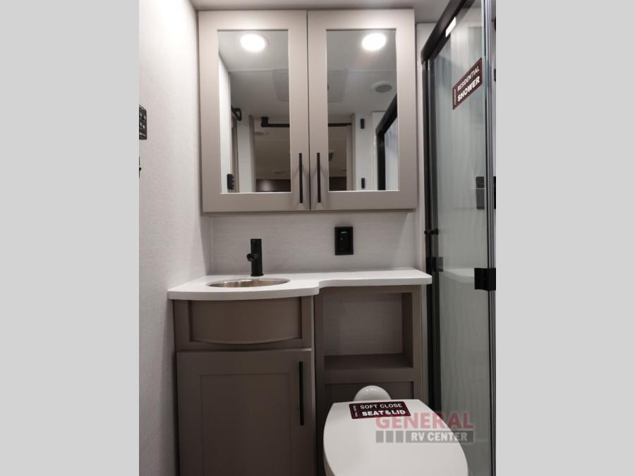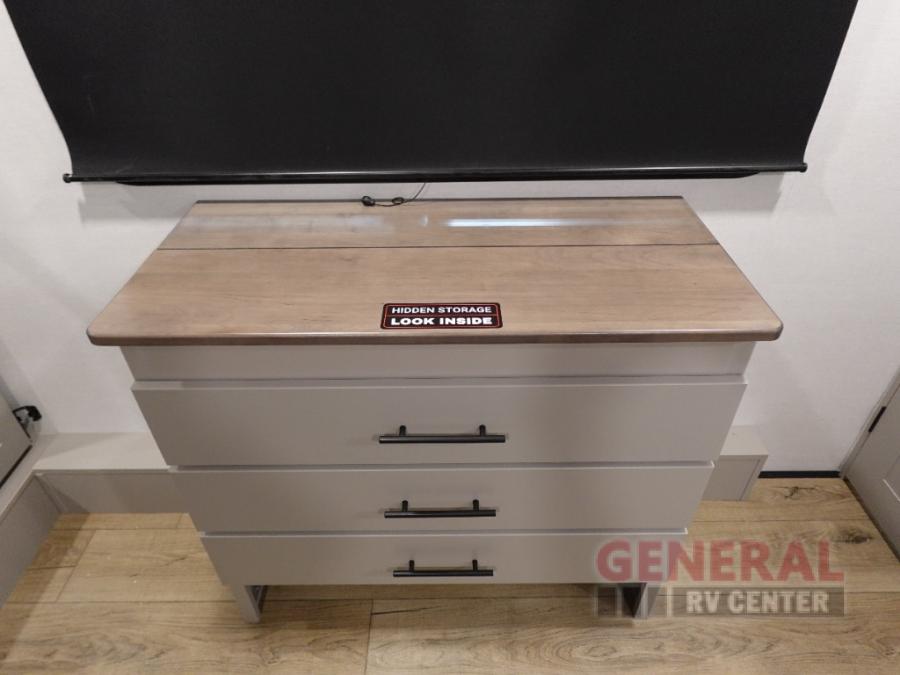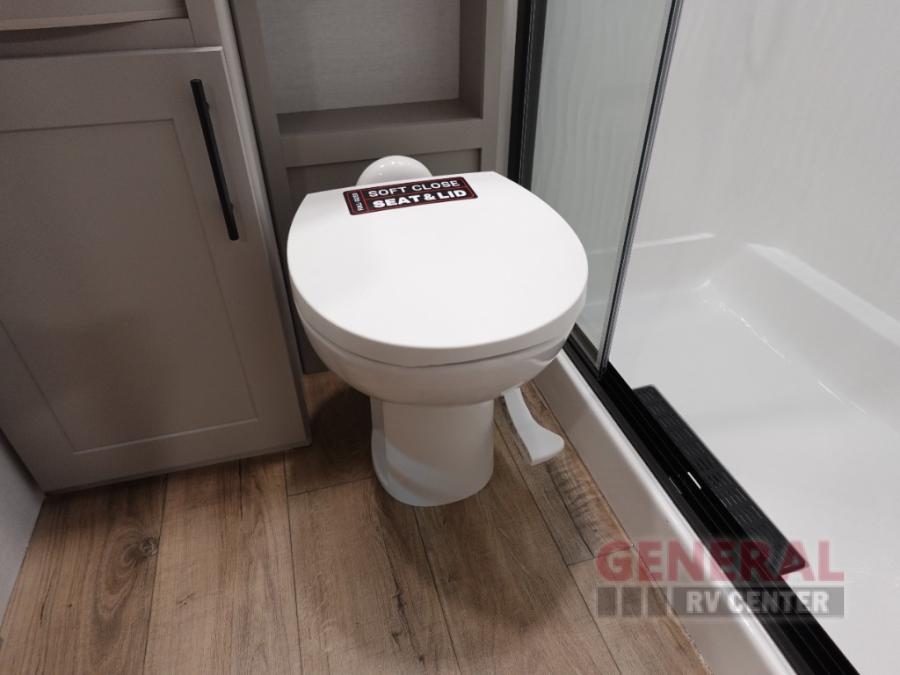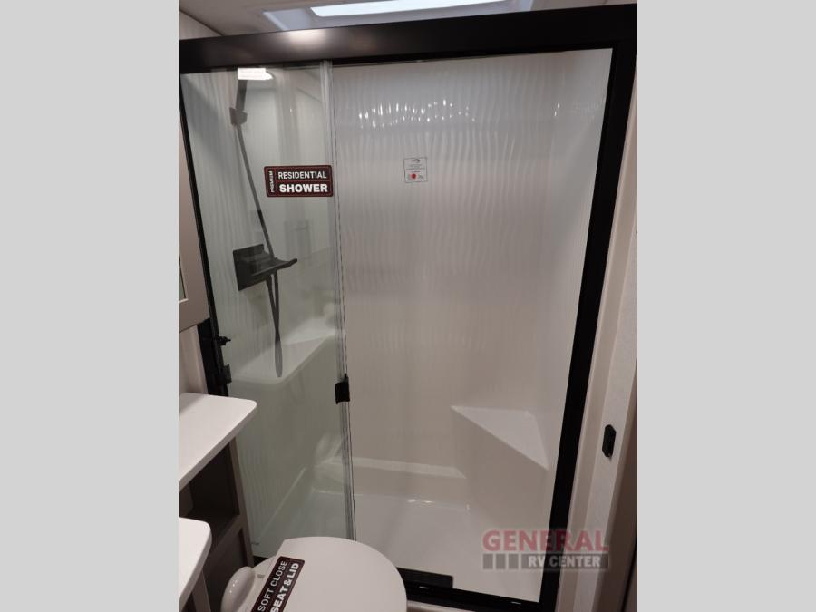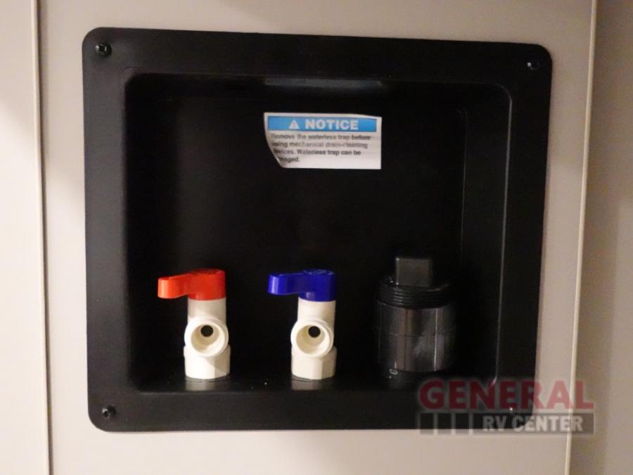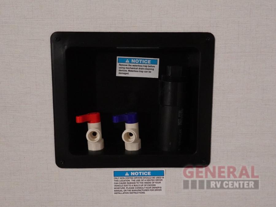 The whole family will have a fun time camping in this toy hauler! You can easily load up your toys into the 11' garage area with the 8' weather resistant ramp door and keep them filled with the dual 30 gallon fuel tanks. Once you unload your toys from the garage area, you can set up the opposing HappiJac sofas with a queen mattress above them, the loft that opens to the living room, and the half bathroom. The kitchen has everything you need to prepare your best meals including two hutches, three pantries, and a kitchen island with two bar stools to enjoy your morning coffee and eggs. The dual entry bathroom has a 48" x 30" shower and leads directly into the front private bedroom. Inside the bedroom is a king bed slide for more floor space, a flip top dresser, and a front wardrobe with washer and dryer prep!