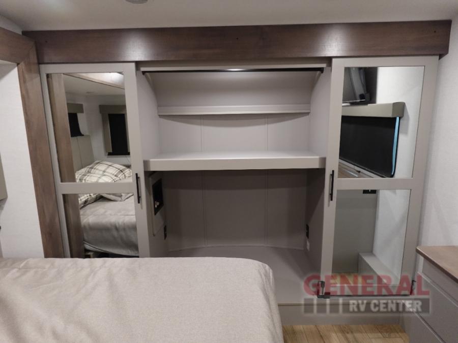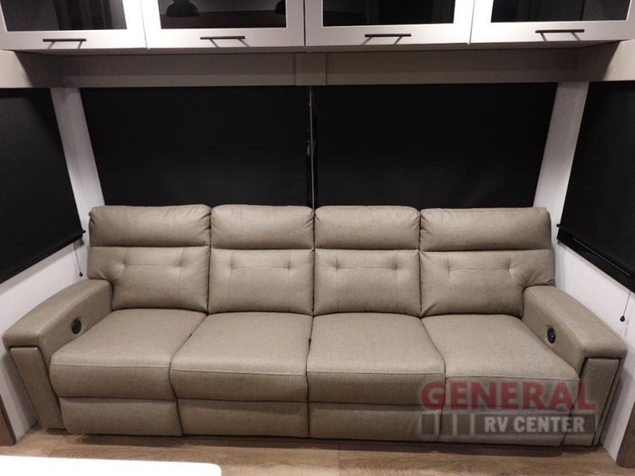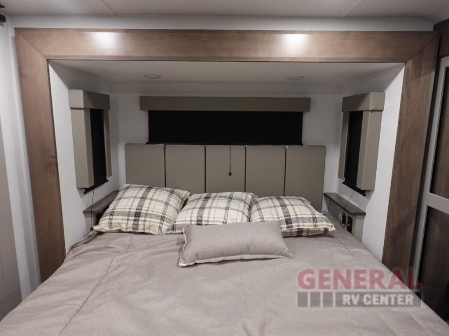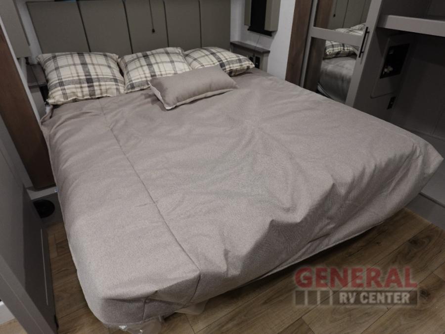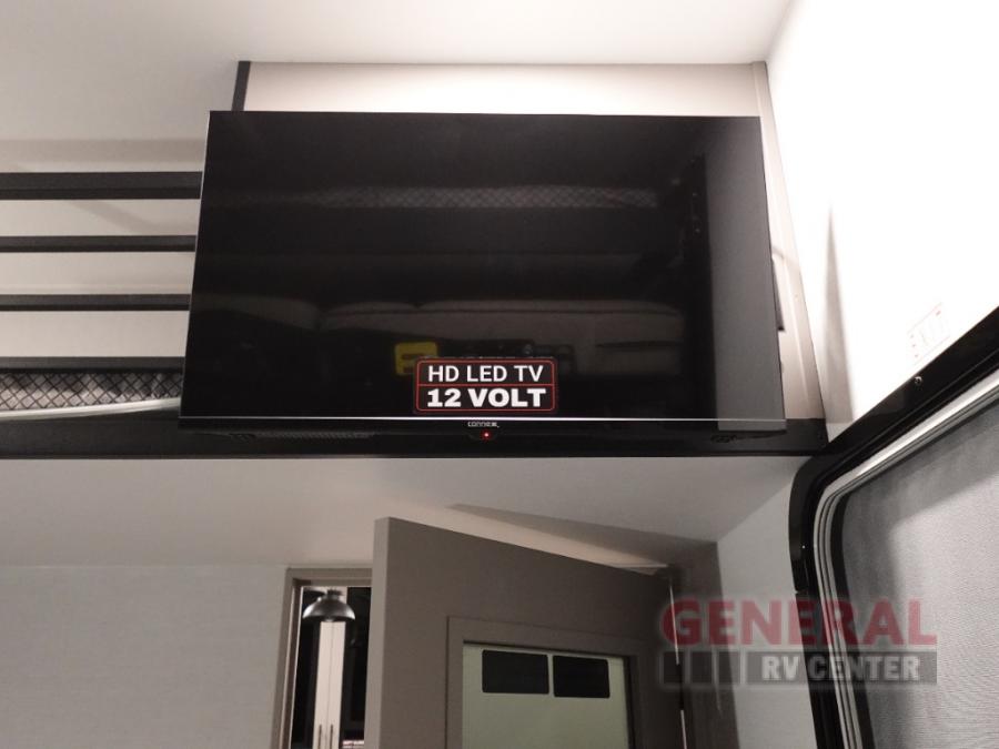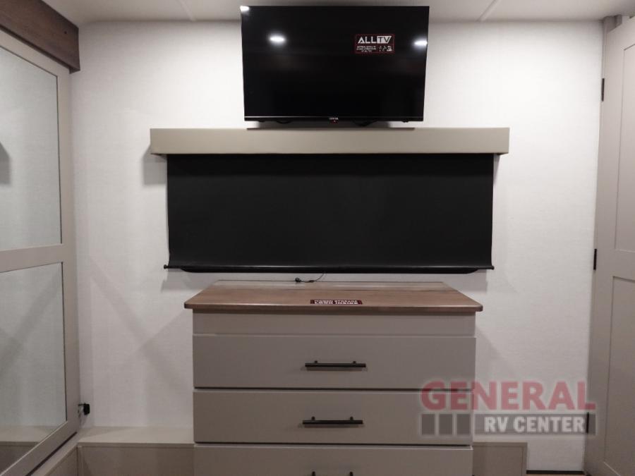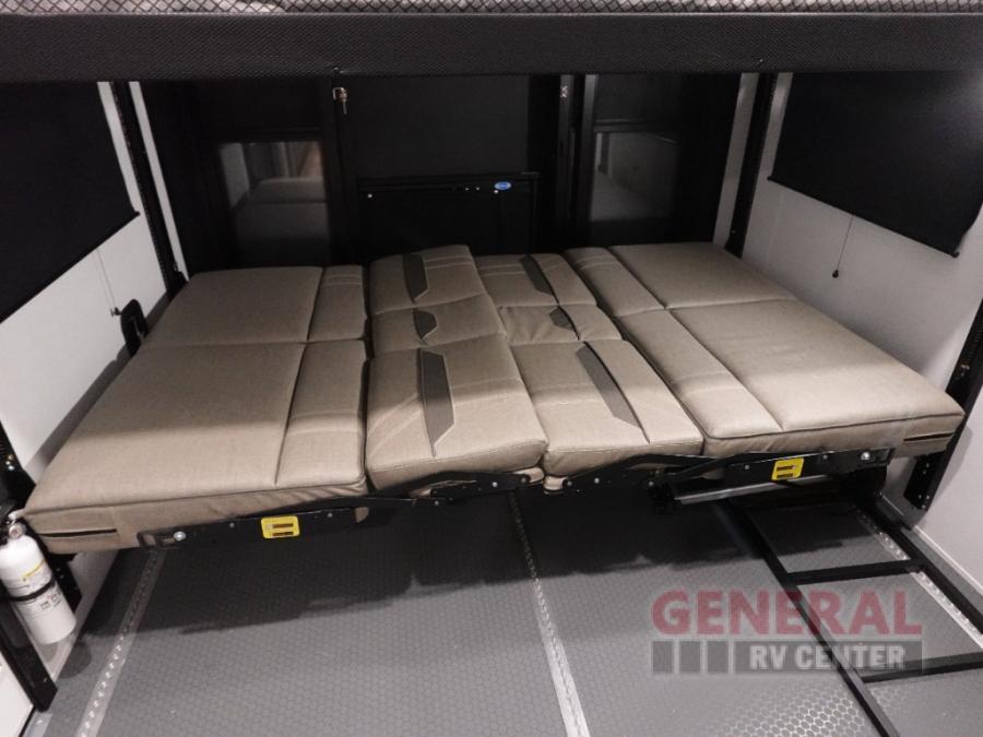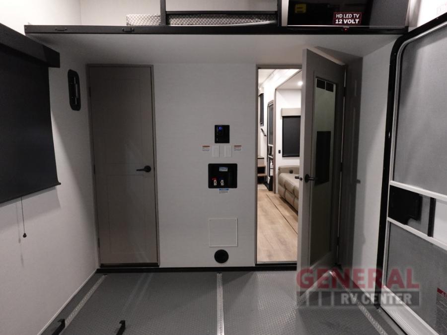 You can bring your toys with you wherever you go with any one of these Alliance RV Valor toy hauler fifth wheels! They are adventure-ready with a quality build from the walk on roof with seamless PVC roof covering to the commercial grade vinyl flooring and MorRyde CRE3000 suspension system. The Performance Running Gear package comes with a 101" wide-body benchmark chassis platform, 7,000 lb. Dexter axles, and a space enhancing drop frame storage compartment to pack in all your riding gear. You can even go off-gridding thanks to the Off the Grid Pack that has two 400 watt solar panels, generator prep, a 40 amp charge controller, and a 100 amp hour lithium iron phosphate battery. Some of the interior comforts you will enjoy are the hardwood cabinet doors and drawers, solid surface kitchen countertops, and commercial grade vinyl flooring with no carpet to make clean up a breeze. The Valor toy haulers are also the Masters of 12 Volt with USB charging station throughout, a stainless steel refrigerator, and more 12 volt features to make camping hassle-free!