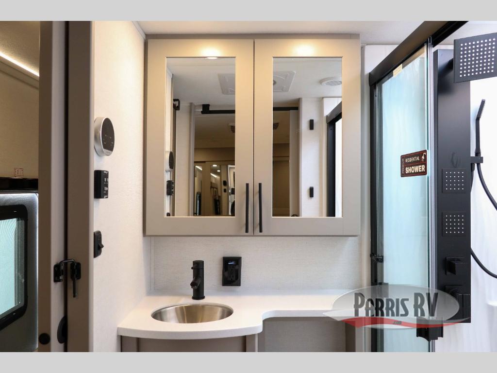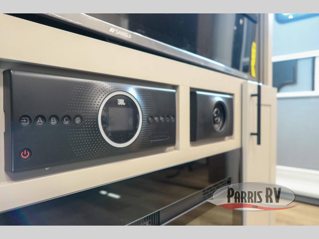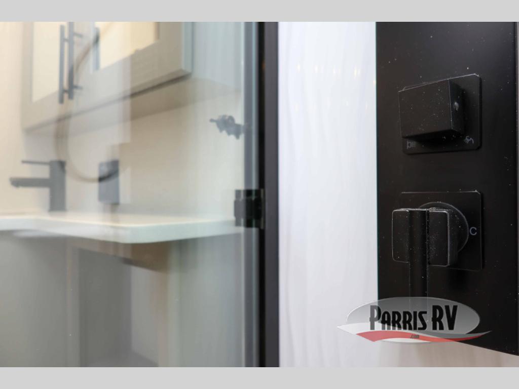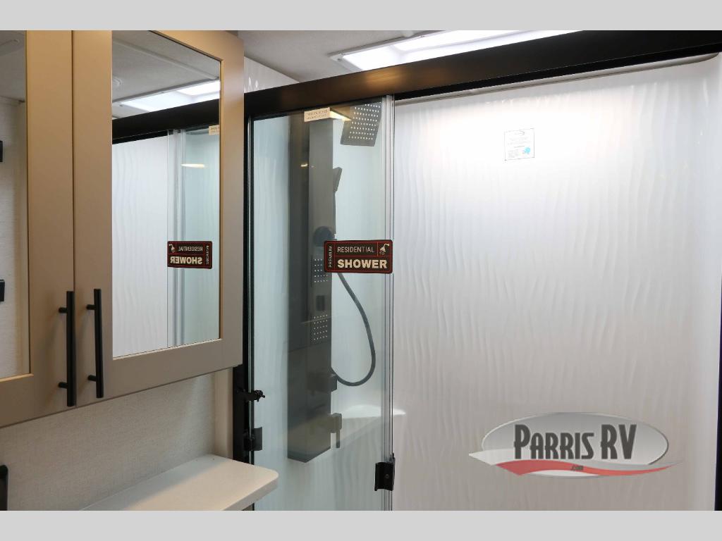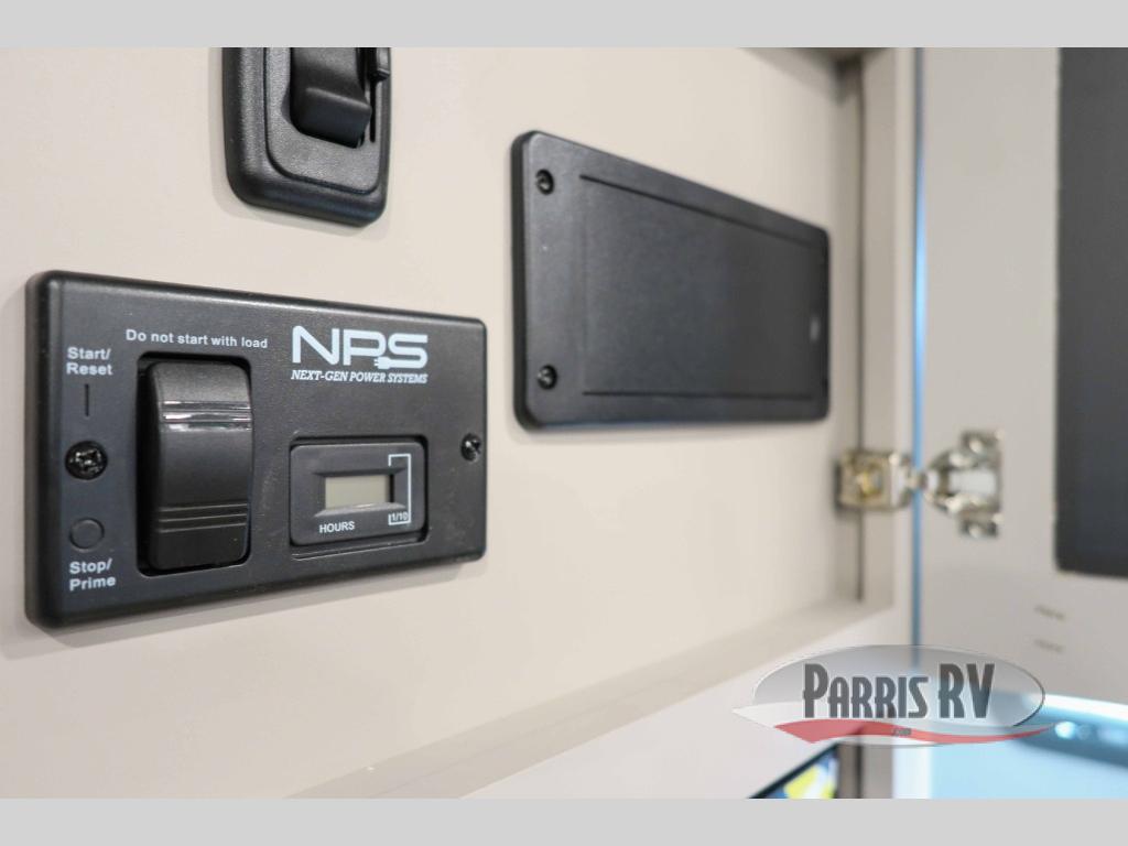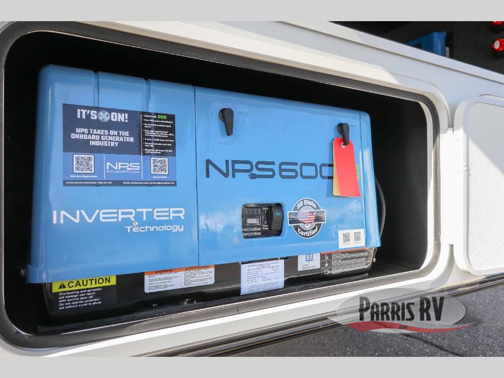 This spacious toy hauler will be perfect for weekend trips to the lake or woods! Once you've unloaded your toys from the 11' separate garage, you can relax on the 60" dual opposing sofas or set up the HappiJac bed for guests if it's getting late. There is also a 30" x 72" bunk/loft bed above the garage, a 40" garage TV, and a half bath for added convenience. As you head into the kitchen area, you'll find ample counter space to prep meals, along with a buffet, a spacious pantry and a 12V refrigerator for perishables. You can dine together at the dinette with chairs, then head to the L-shaped sofa across from the fireplace and 65" TV for movie night. The full bath includes an entrance from the hallway and into the front master bedroom. Here, you'll enjoy a king bed slide out, a flip-up dresser with a 32" TV, plus a front wardrobe with washer and dryer prep if you plan to go full-time!