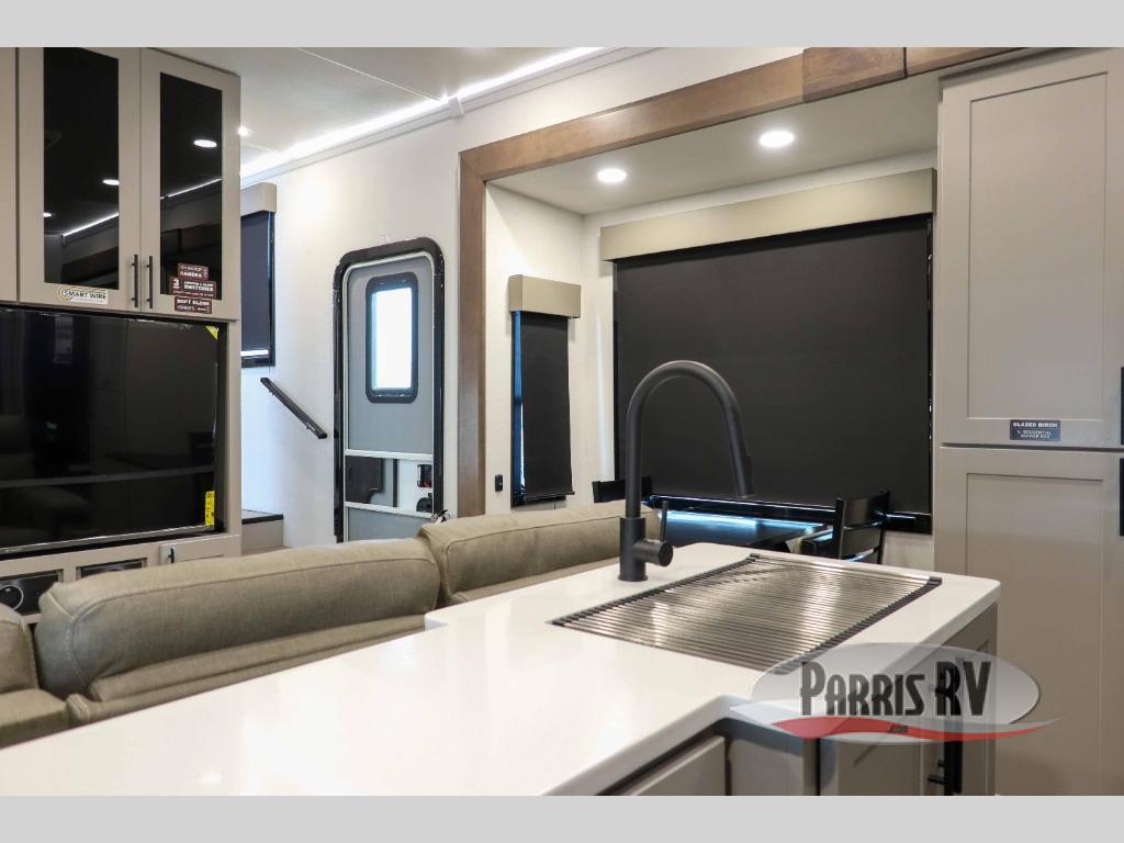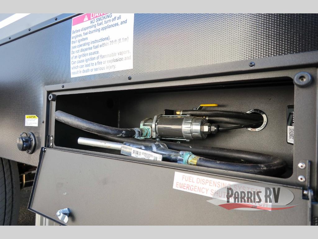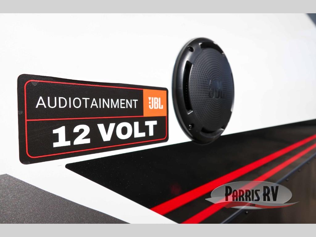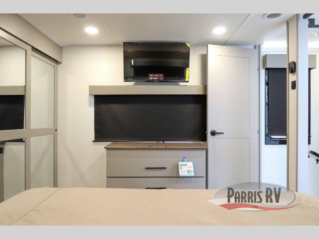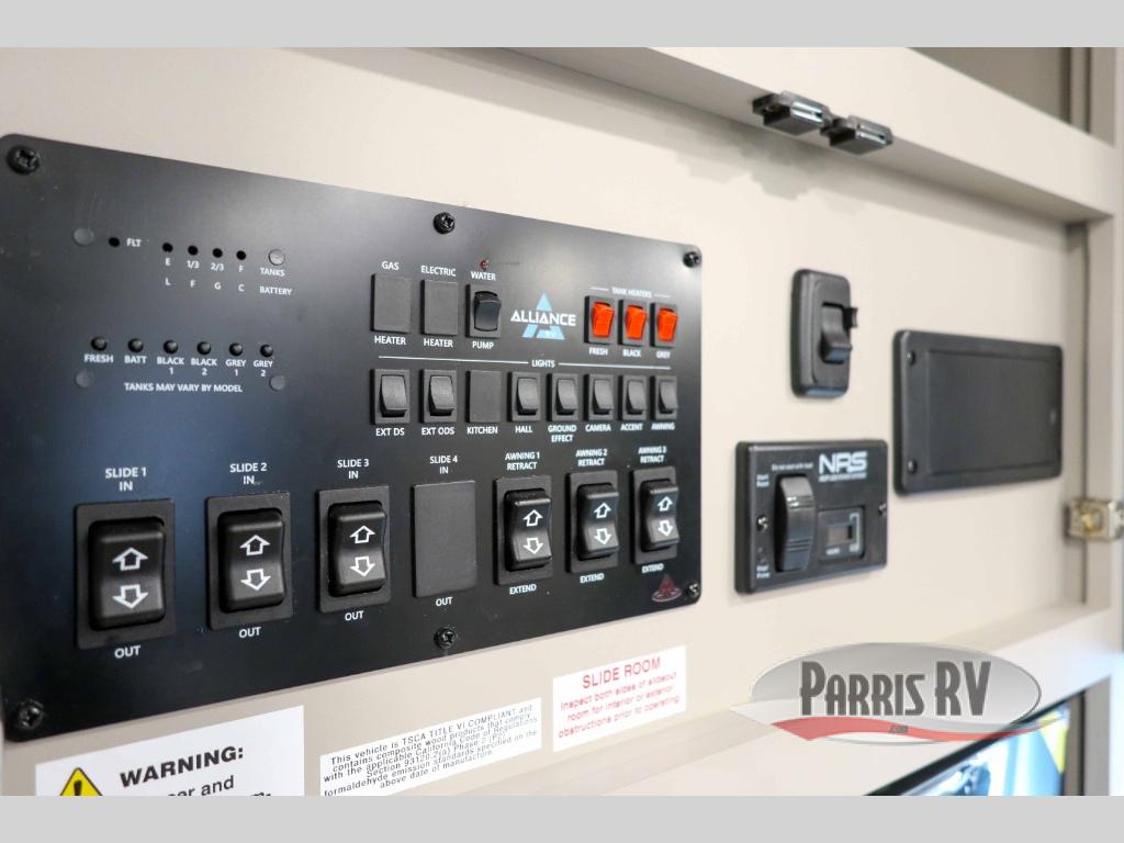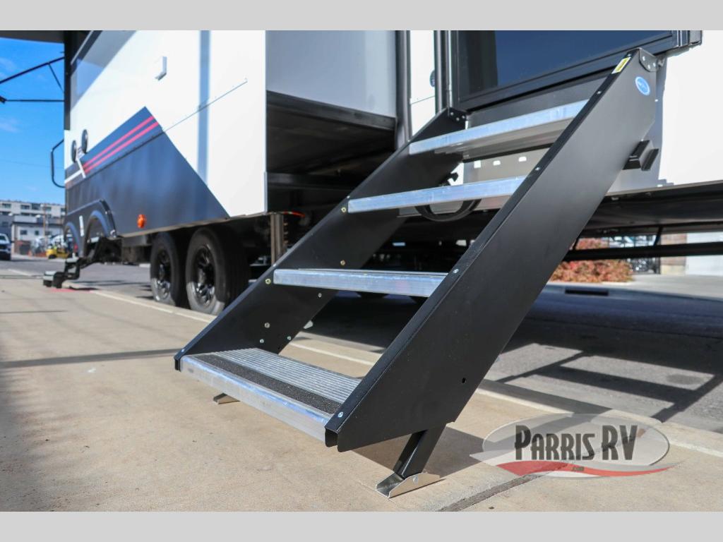 You can bring your toys with you wherever you go with any one of these Alliance RV Valor toy hauler fifth wheels! They are adventure-ready with a quality build from the walk on roof with seamless PVC roof covering to the commercial grade vinyl flooring and MorRyde CRE3000 suspension system. The Performance Running Gear package comes with a 101" wide-body benchmark chassis platform, Dexter axles, and a space enhancing drop frame storage compartment to pack in all your riding gear. You can even go off-gridding thanks to the Off the Grid Pack that has two 400-watt solar panels, generator prep, a 60-amp charge controller, and a 100-amp hour lithium iron phosphate battery. Some of the interior comforts you will enjoy are the hardwood cabinet doors and drawers, solid surface kitchen countertops, and commercial grade vinyl flooring with no carpet to make clean up a breeze. The Valor toy haulers are also the Masters of 12 Volt with USB charging station throughout, a 12V refrigerator, and more 12-volt features to make camping hassle-free!