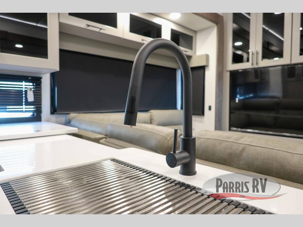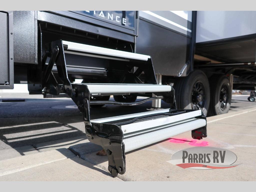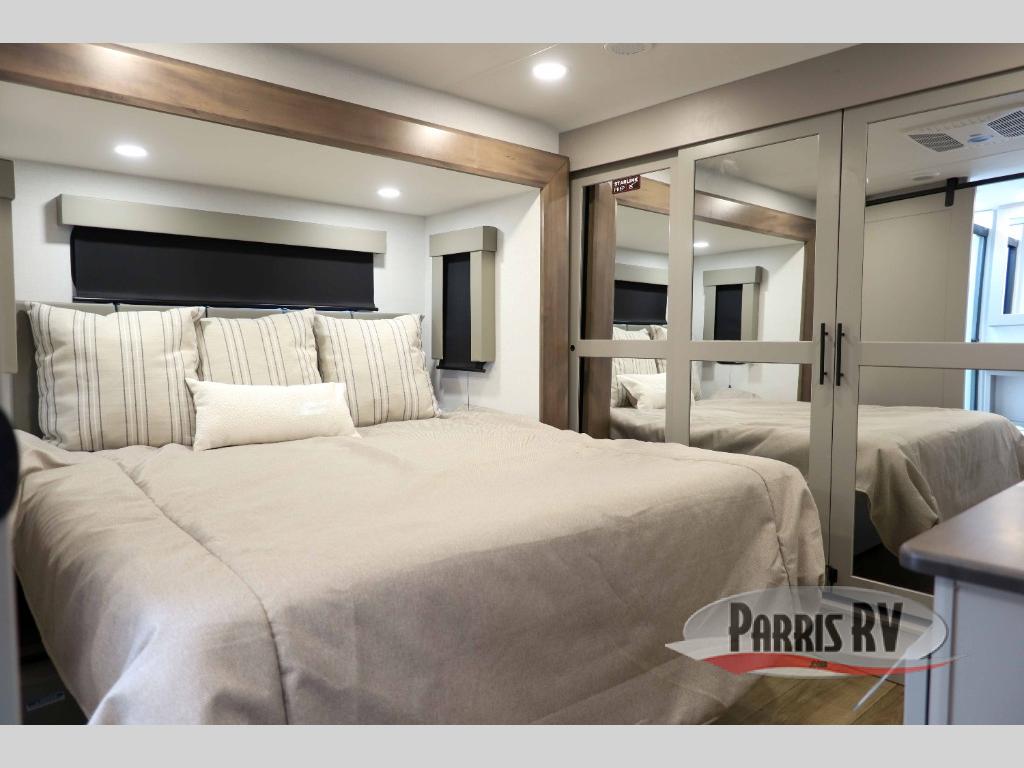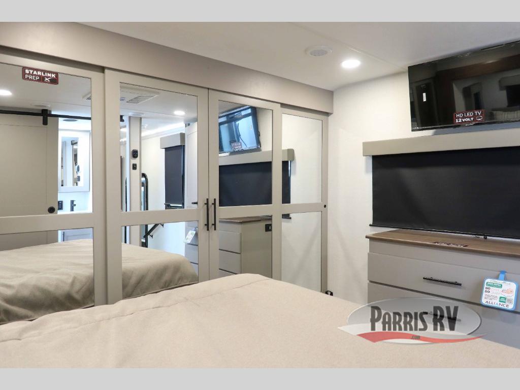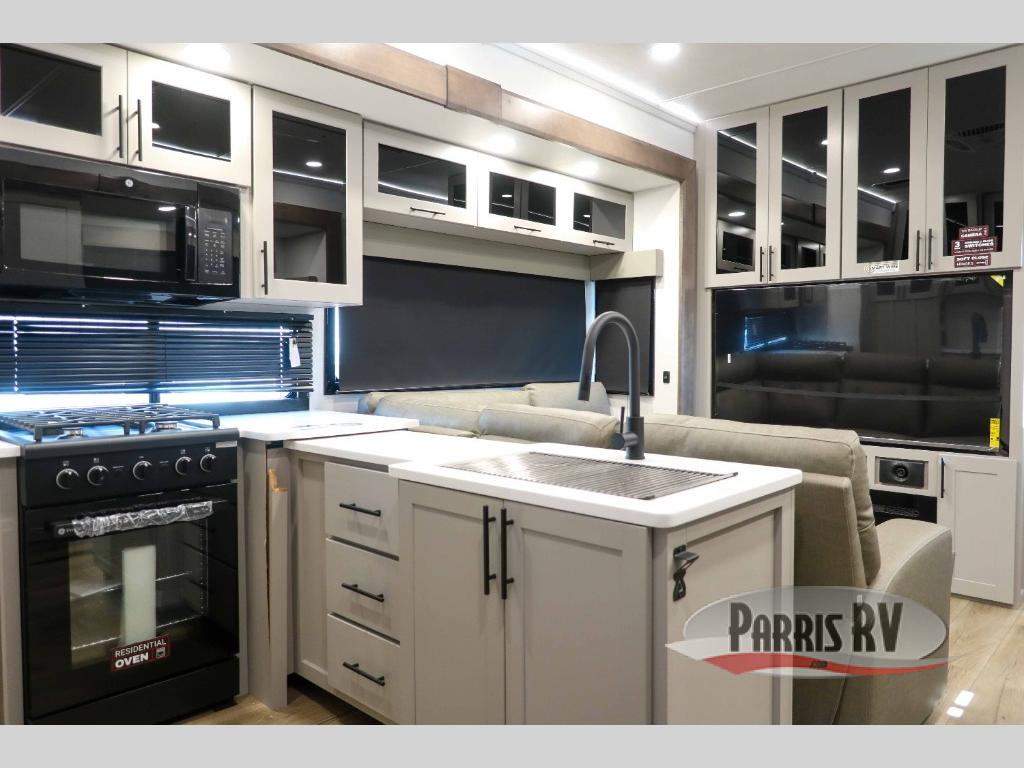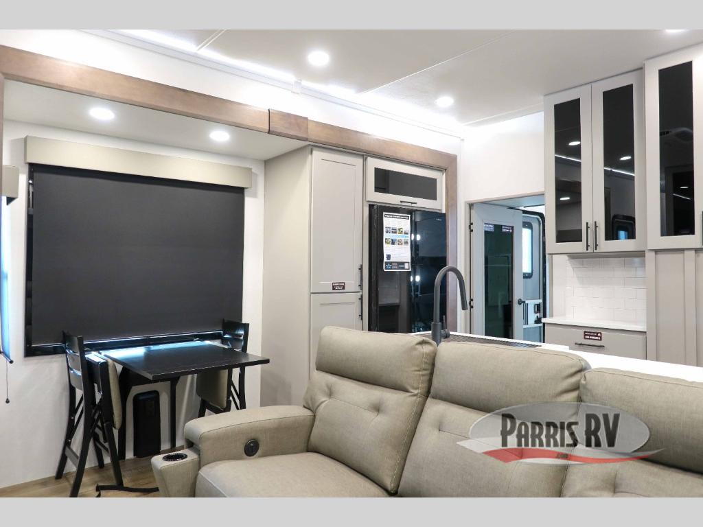 You can bring your toys with you wherever you go with any one of these Alliance RV Valor toy hauler fifth wheels! They are adventure-ready with a quality build from the walk on roof with seamless PVC roof covering to the commercial grade vinyl flooring and MorRyde CRE3000 suspension system. The Performance Running Gear package comes with a 101" wide-body benchmark chassis platform, Dexter axles, and a space enhancing drop frame storage compartment to pack in all your riding gear. You can even go off-gridding thanks to the Off the Grid Pack that has two 400-watt solar panels, generator prep, a 60-amp charge controller, and a 100-amp hour lithium iron phosphate battery. Some of the interior comforts you will enjoy are the hardwood cabinet doors and drawers, solid surface kitchen countertops, and commercial grade vinyl flooring with no carpet to make clean up a breeze. The Valor toy haulers are also the Masters of 12 Volt with USB charging station throughout, a 12V refrigerator, and more 12-volt features to make camping hassle-free!