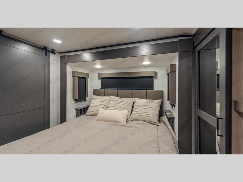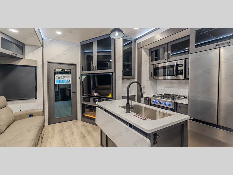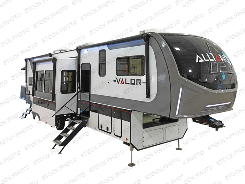 You can bring your toys with you wherever you go with any one of these Alliance RV Valor toy hauler fifth wheels! They are adventure-ready with a quality build from the walk on roof with seamless PVC roof covering to the commercial grade vinyl flooring and MorRyde CRE3000 suspension system. The Performance Running Gear package comes with a 101" wide-body benchmark chassis platform, 7,000 lb. Dexter axles, and a space enhancing drop frame storage compartment to pack in all your riding gear. You can even go off-gridding thanks to the Off the Grid Pack that has two 400 watt solar panels, generator prep, a 40 amp charge controller, and a 100 amp hour lithium iron phosphate battery. Some of the interior comforts you will enjoy are the hardwood cabinet doors and drawers, solid surface kitchen countertops, and commercial grade vinyl flooring with no carpet to make clean up a breeze. The Valor toy haulers are also the Masters of 12 Volt with USB charging station throughout, a stainless steel refrigerator, and more 12 volt features to make camping hassle-free!