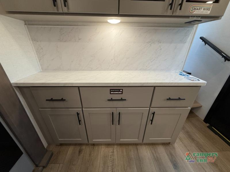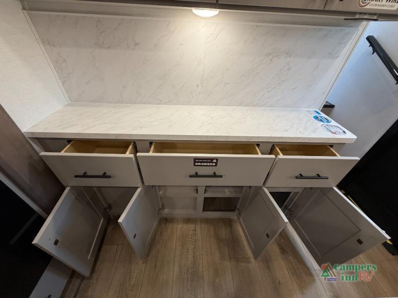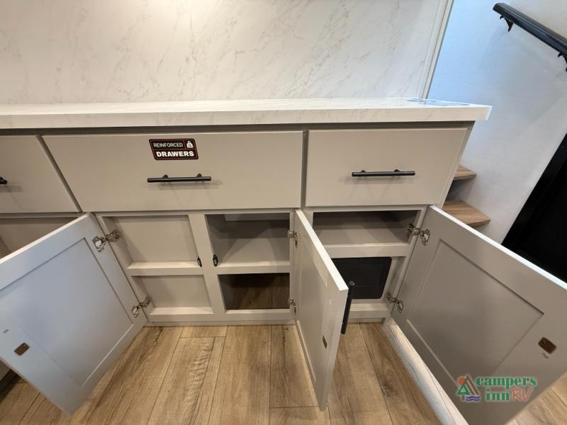 Features a kitchen island, making prepping and cooking easier when you’re on the road.