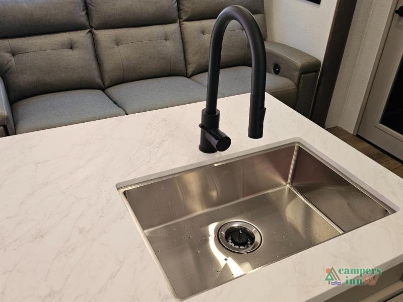 Kitchen island with deep sink and high-rise faucet for easy prep and cleanup