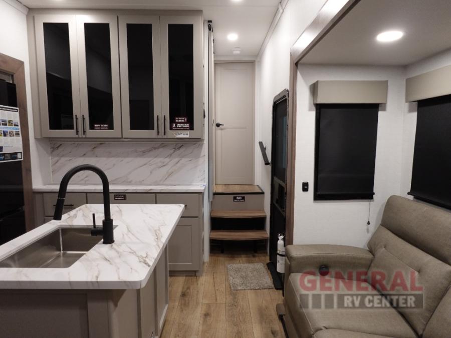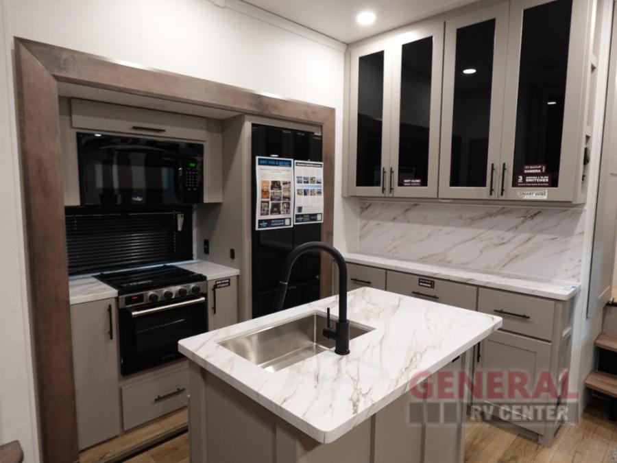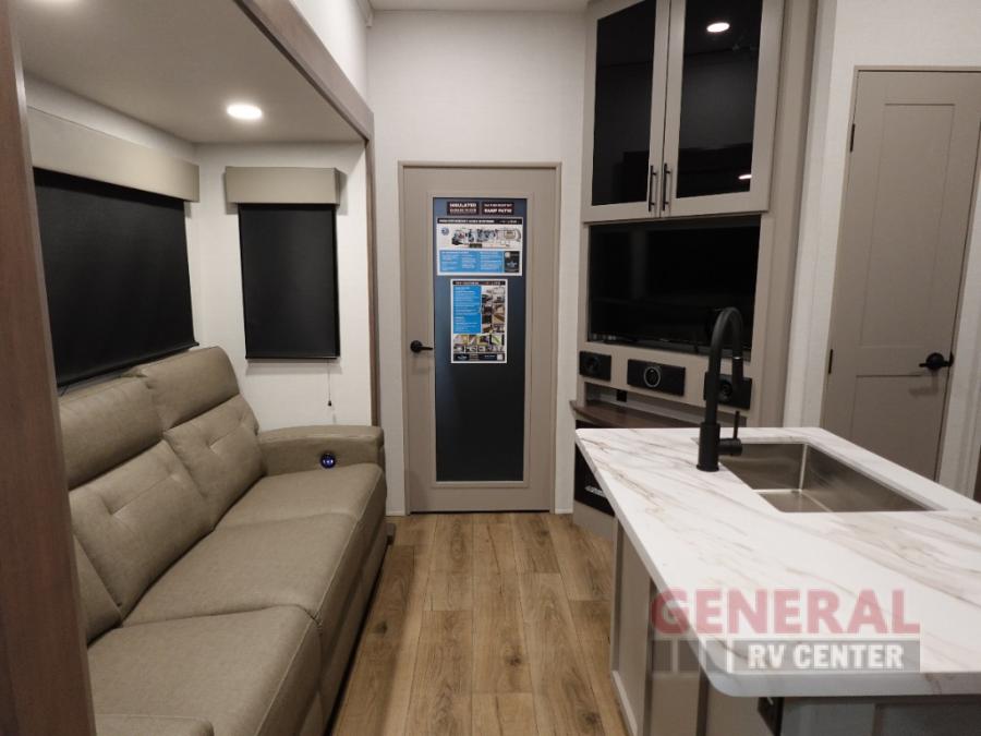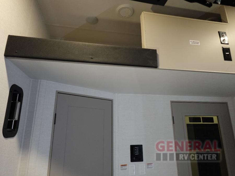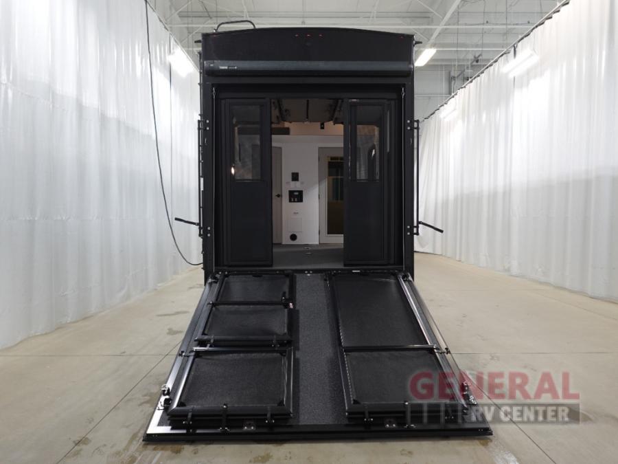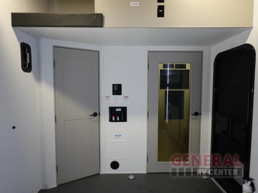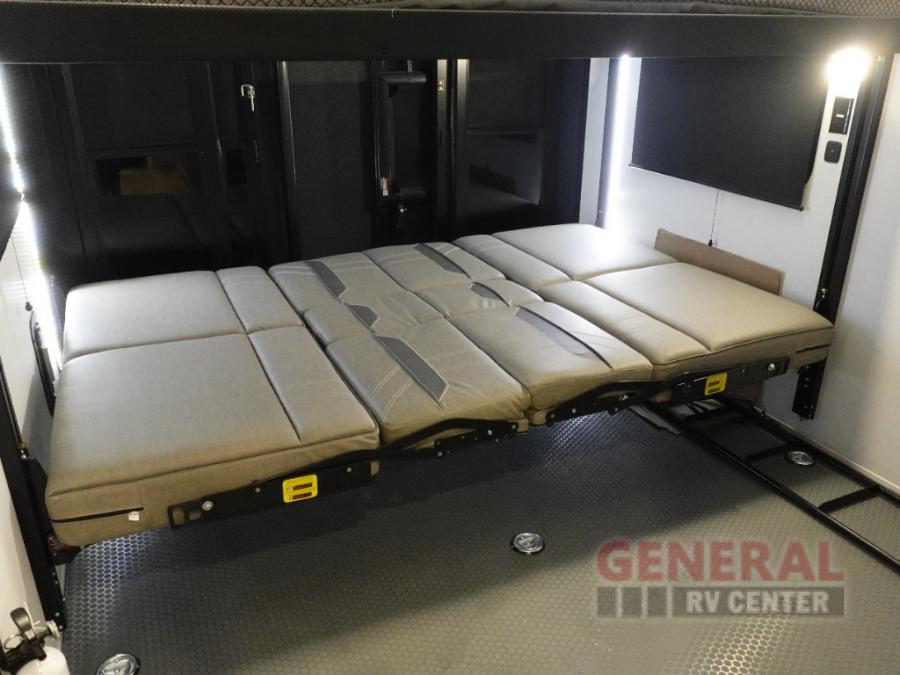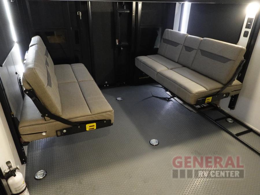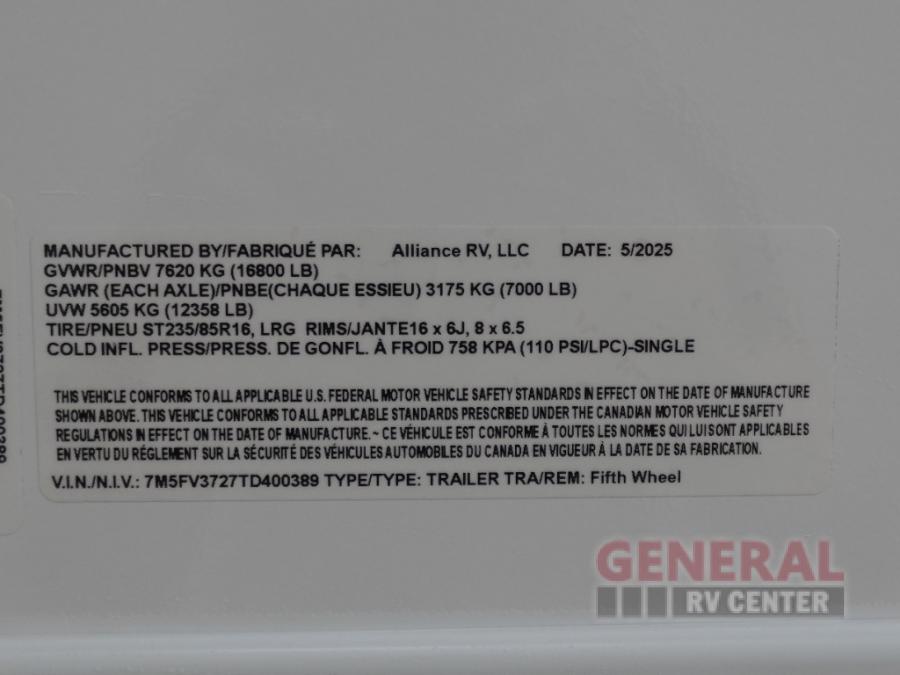 With any Valor All-Access toy hauler by Alliance RV you will be getting a travel trailer or fifth wheel with exceptional features at a great value! There is a painted fiberglass front cap, Mylar reinforced exterior seals, Azdel-backed fiberglass sidewalls, and a walk-on roof with a seamless PVC roof covering for added strength and durability. The 101" wide-body Benchmark chassis means you can bring along your larger toys, and the multipoint tie-down system will keep your toys safe and secure on the way to the campground. All of your power needs will be met with the Masters of 12 Volt Package that includes a 12V JBL sound system and USB charging stations throughout, plus the Off The Grid Pack comes with a 400 watt solar panel, 40 amp charge controller, and generator prep to keep you going all week long. Some of the interior comforts you'll enjoy are commercial grade vinyl flooring with no carpet so you can easily clean up, black cabinetry hardware, residential LED recessed ceiling lights, and so much more!