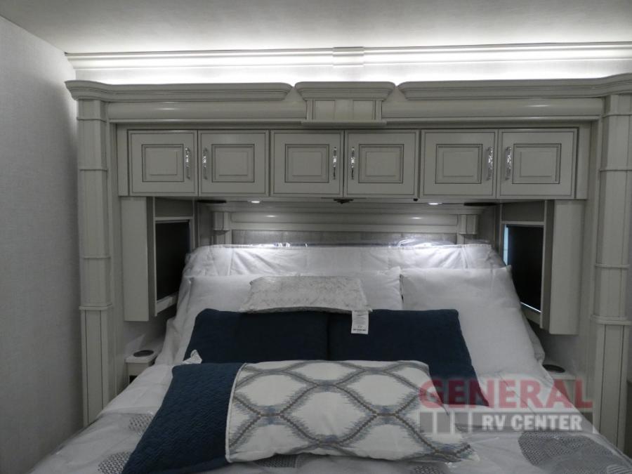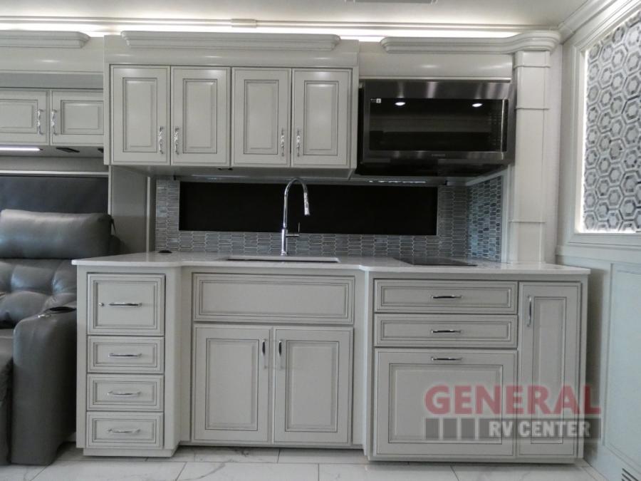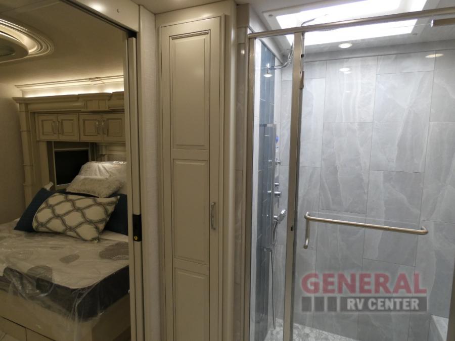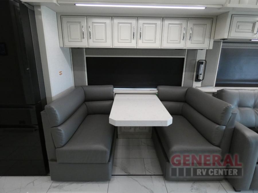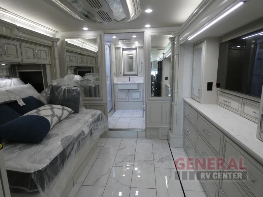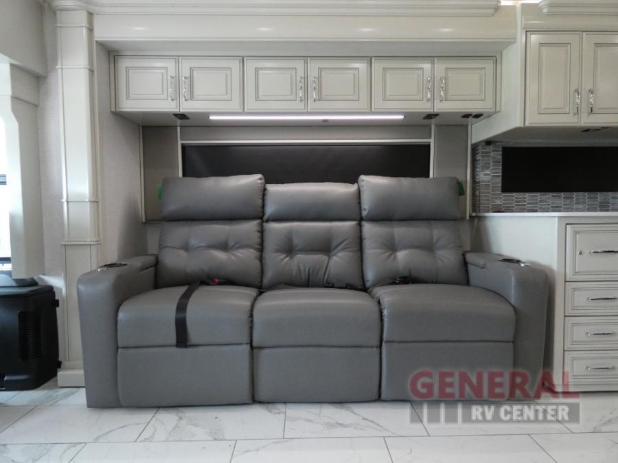 Hit the road with confidence in any one of these American Coach American Dream Class A diesel motorhomes with their Freightliner Custom Chassis and Cummins diesel engine! You will travel stress free thanks to the RoadWatch safety system that comes with collision mitigation, adaptive cruise, and electronic stability, automatic traction, and roll stability control. You'll appreciate the Aqua View Showermiser fresh water reclamation system, along with the Aqua-Hot 450D water heating system, 12.5kW Onan generator, and many more convenient utilities. The interior includes beautiful Quartz kitchen countertops, porcelain tile flooring, hardwood cabinet doors, and spacious wardrobes so nothing gets left behind. Head outdoors to find a roof-mounted electric awning with LED lighting, side-swing aluminum bus-style luggage doors, automatic leveling jacks, and carriage lighting to name a few conveniences.