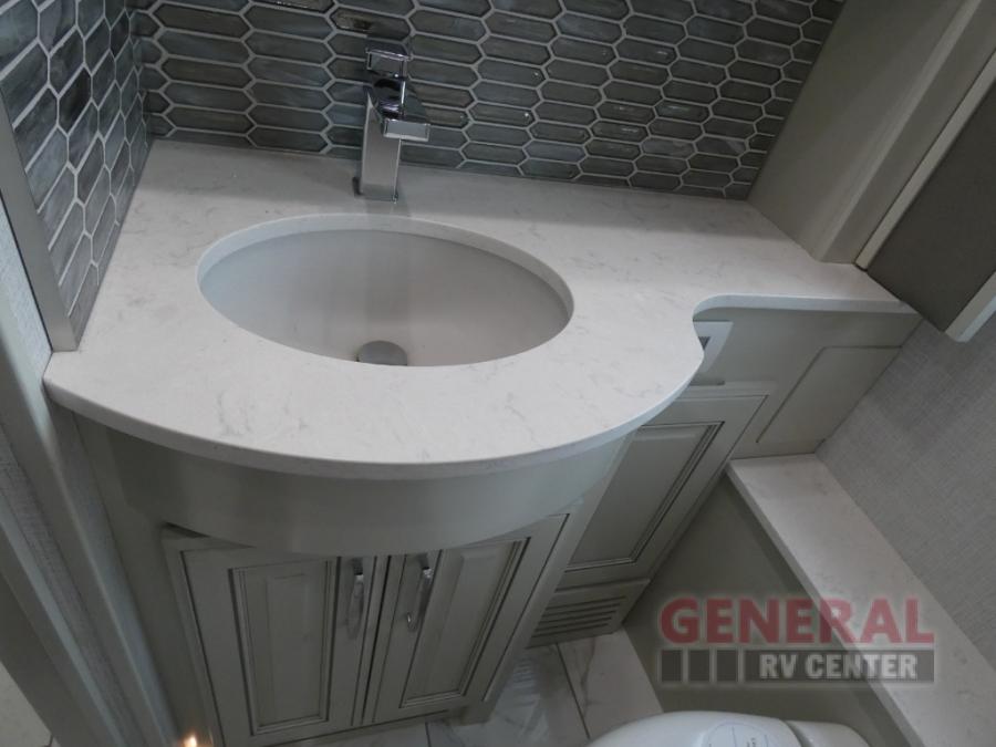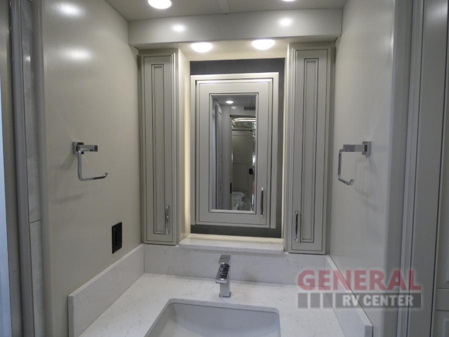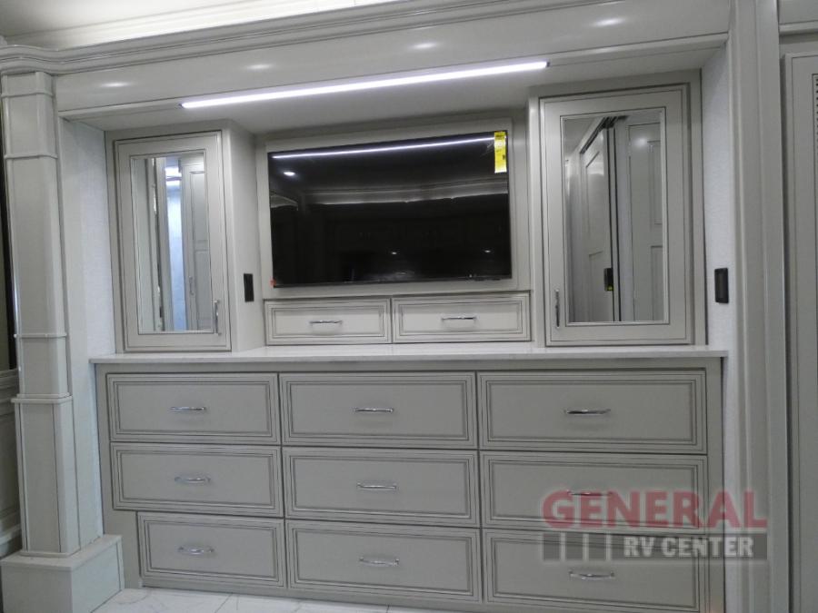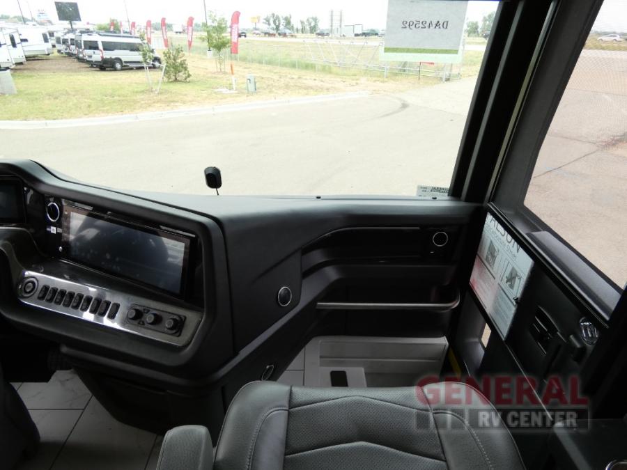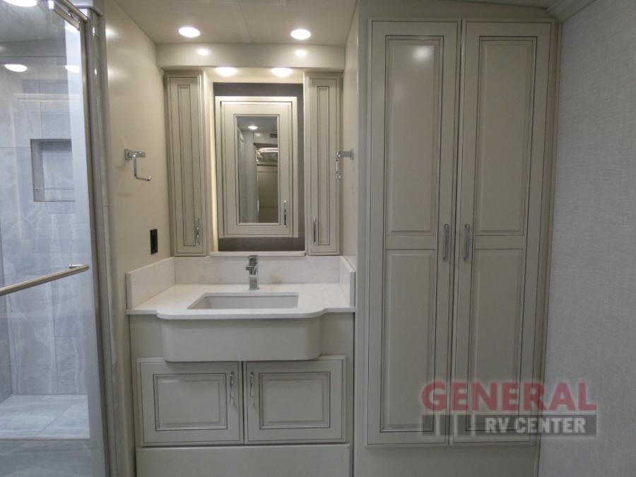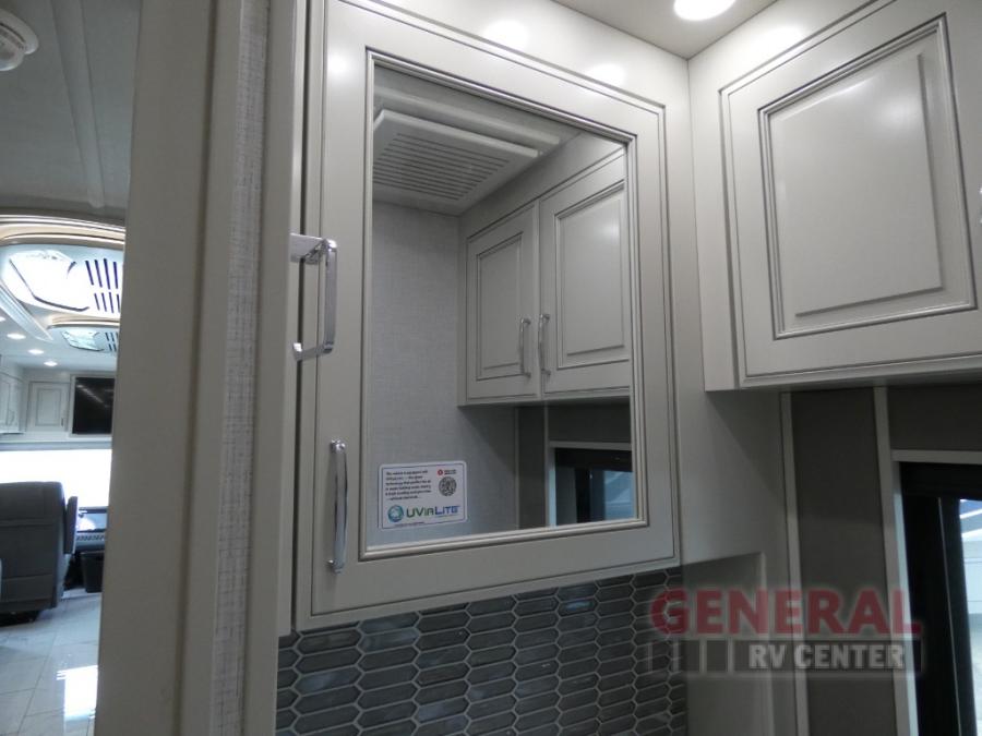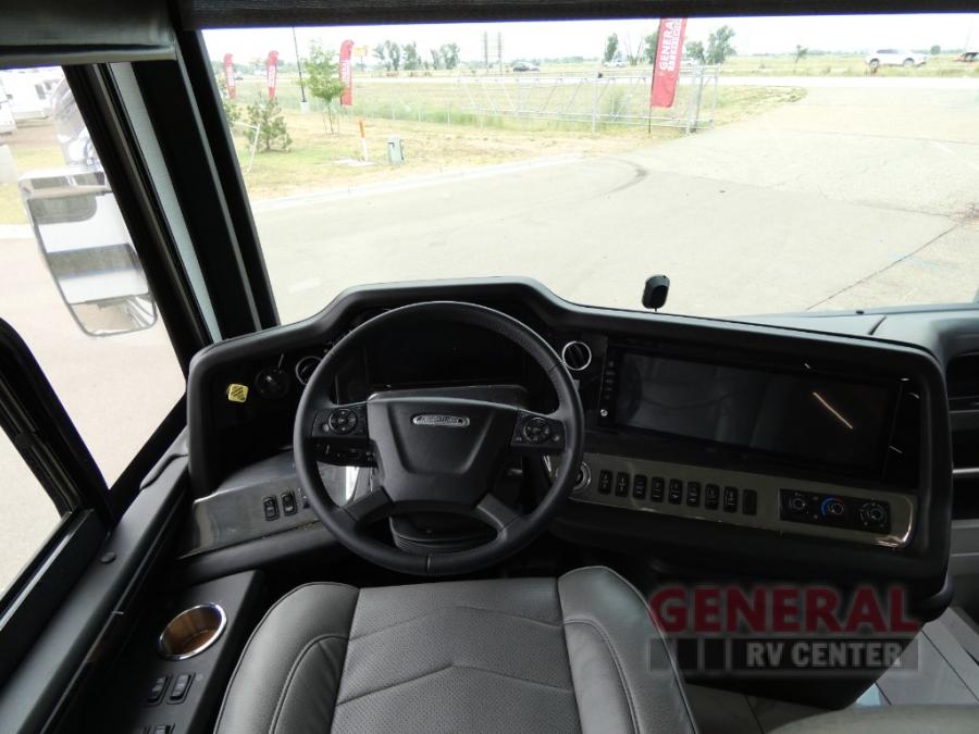 Hit the road with confidence in any one of these American Coach American Dream Class A diesel motorhomes with their Freightliner Custom Chassis and Cummins diesel engine! You will travel stress free thanks to the RoadWatch safety system that comes with collision mitigation, adaptive cruise, and electronic stability, automatic traction, and roll stability control. You'll appreciate the Aqua View Showermiser fresh water reclamation system, along with the Aqua-Hot 450D water heating system, 12.5kW Onan generator, and many more convenient utilities. The interior includes beautiful Quartz kitchen countertops, porcelain tile flooring, hardwood cabinet doors, and spacious wardrobes so nothing gets left behind. Head outdoors to find a roof-mounted electric awning with LED lighting, side-swing aluminum bus-style luggage doors, automatic leveling jacks, and carriage lighting to name a few conveniences.