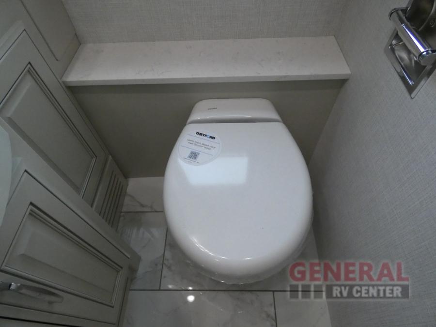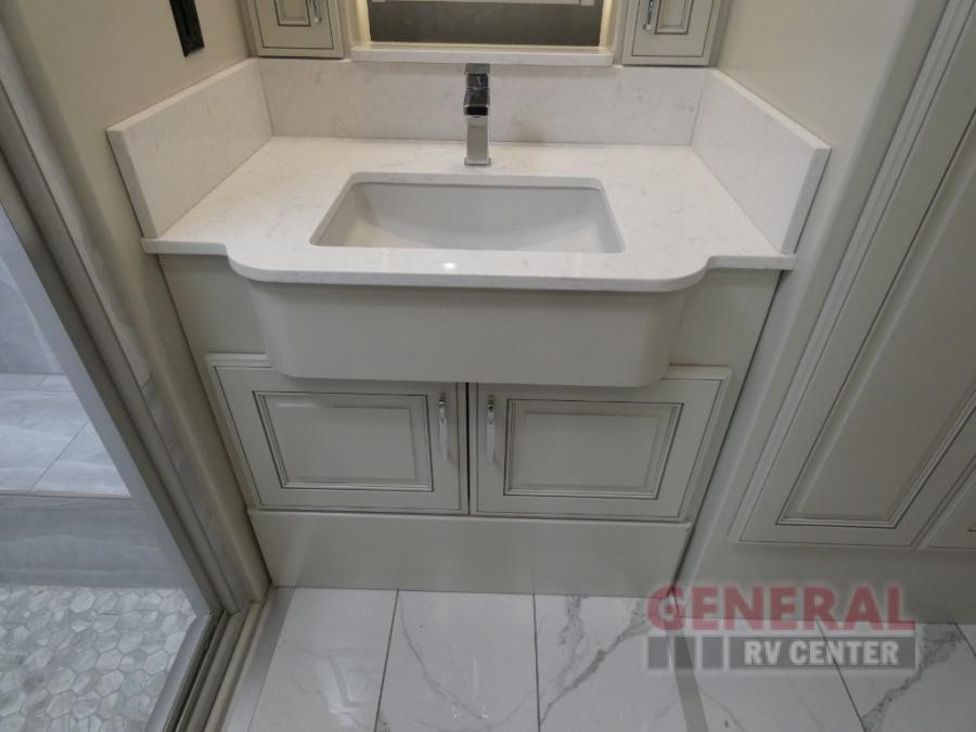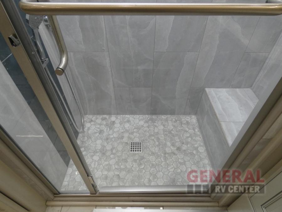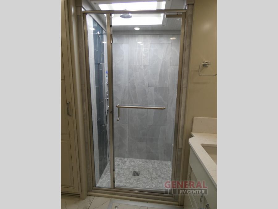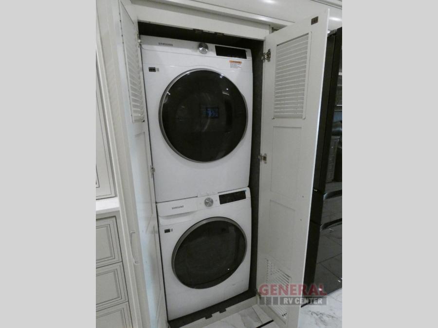 You won't want to travel any other way once you step inside this motorhome! The sofa sleeper with a queen mattress and second sofa sleeper with a full mattress offers comfortable places to relax and house more guests. Grab a snack from the kitchen pantry, a cold beverage from the residential four door refrigerator with an ice maker, and play some card games at the free-standing dinette with credenza. The galley pull-out counter will make meal prepping easier too. Across from the half bathroom is a stackable Samsung washer and dryer to keep your clothes clean throughout the entire trip. The full rear bathroom has a 30" x 55" spacious shower with a seat to clean up in and a wardrobe to keep your towels close!