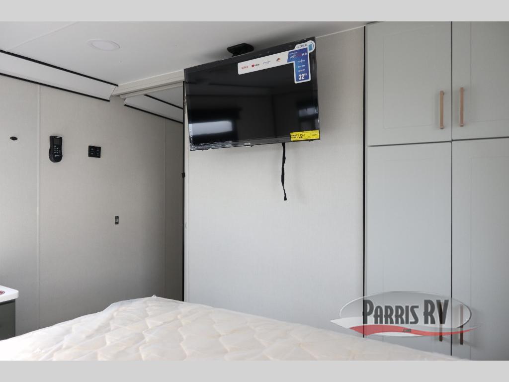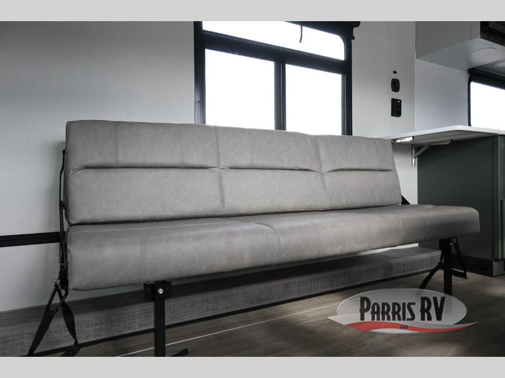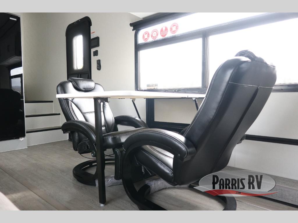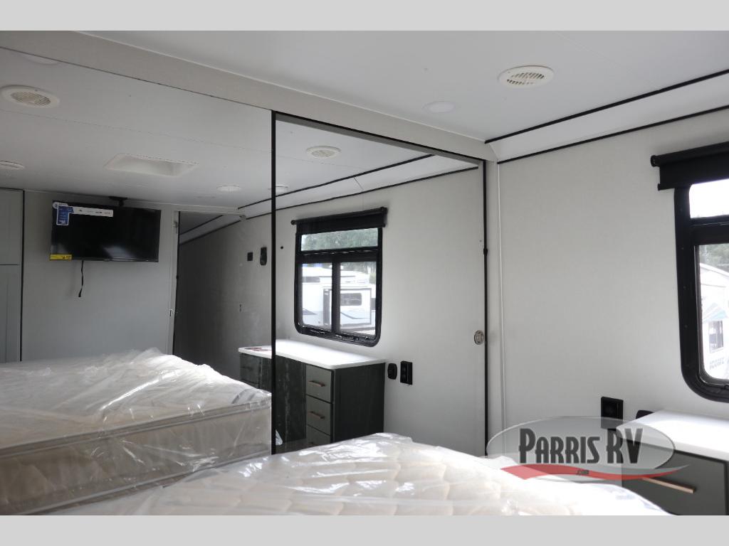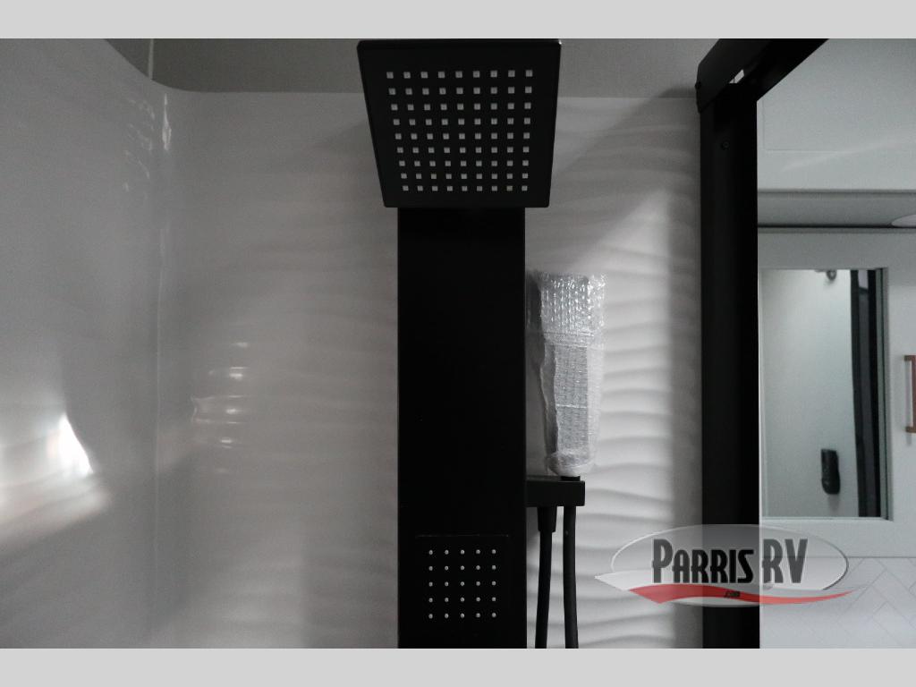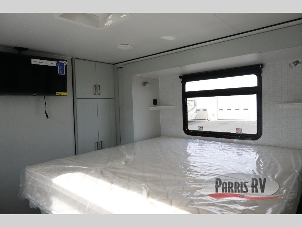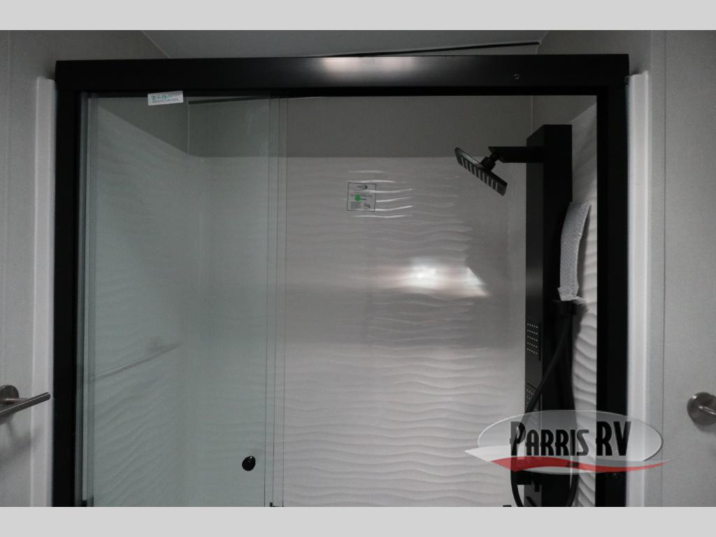 Start a new adventure in this spacious toy hauler that can sleep 2-12 depending on the options you choose to add! Once your toys are unloaded using the cableless rear ramp door, you can head out on a trail or two. You'll find a residential queen bed with storage in the front bedroom, along with a large front closet and TV prep if you want to add a television. The full bath includes a spa/jet shower fixture that is sure to be nice after a day of riding the trails, and there is a glass shower door for added luxury. Head to the kitchen where you can whip up a meal for your crew on the LP three burner cooktop or in the convection microwave, and you can dine at the dinette with four chairs. If you'd like to get some fresh air, take your plate outdoors to sit under the power awning with a light strip!