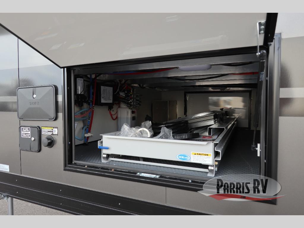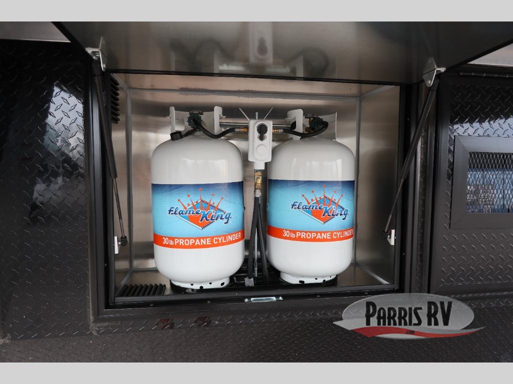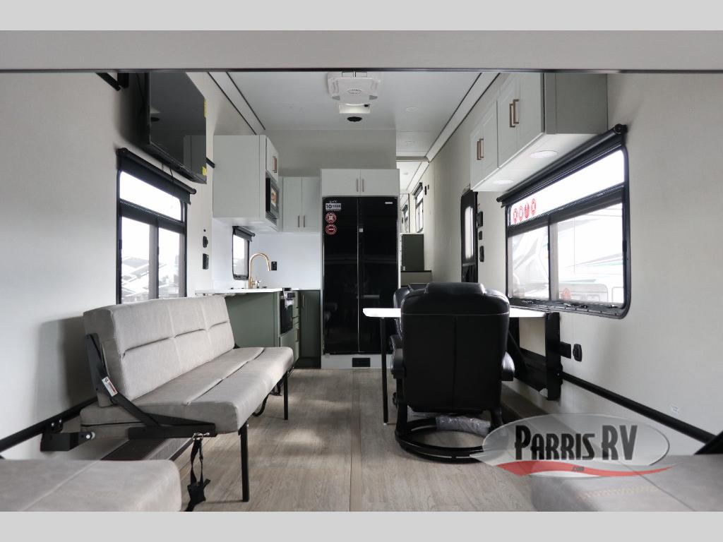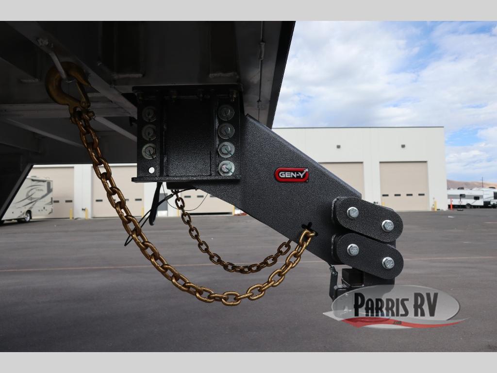With any PLA 750 toy hauler fifth wheel by ATC Trailers, you will find a durable unit made to last thanks to the 6-sided welded aluminum frame, enclosed underbelly, composite ramp door, and more! The LifeTrac modular component system lets you configure your garage how you need it, and there are also tie-downs with three rows of Airline tracks with covers and an exterior pass-through storage for all the riding gear! Inside, you'll enjoy aluminum cabinets with solid surface countertops in the kitchen and bath, dimmable can ceiling lights, composite with commercial-grade vinyl flooring, and a porcelain toilet to name a few stand-out features. You can further customize your toy hauler by adding one or more of the available options, such as a deck package, 36 gallon fuel station, happijac sofa sleepers, an exterior shower, and more!
