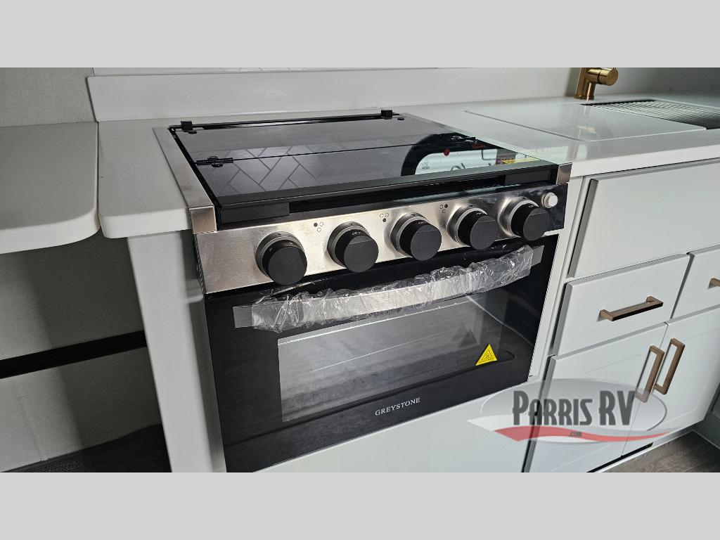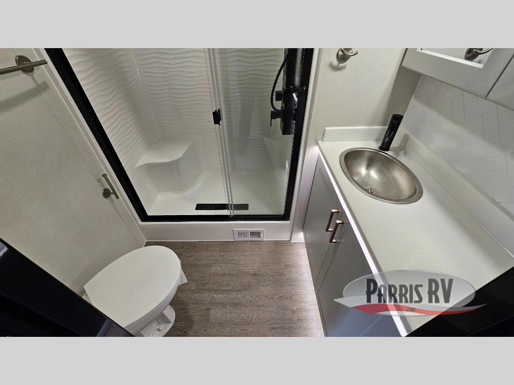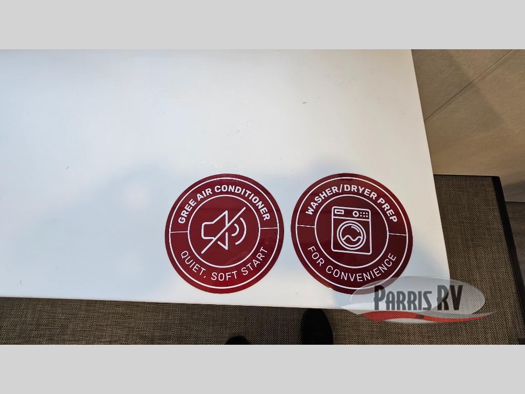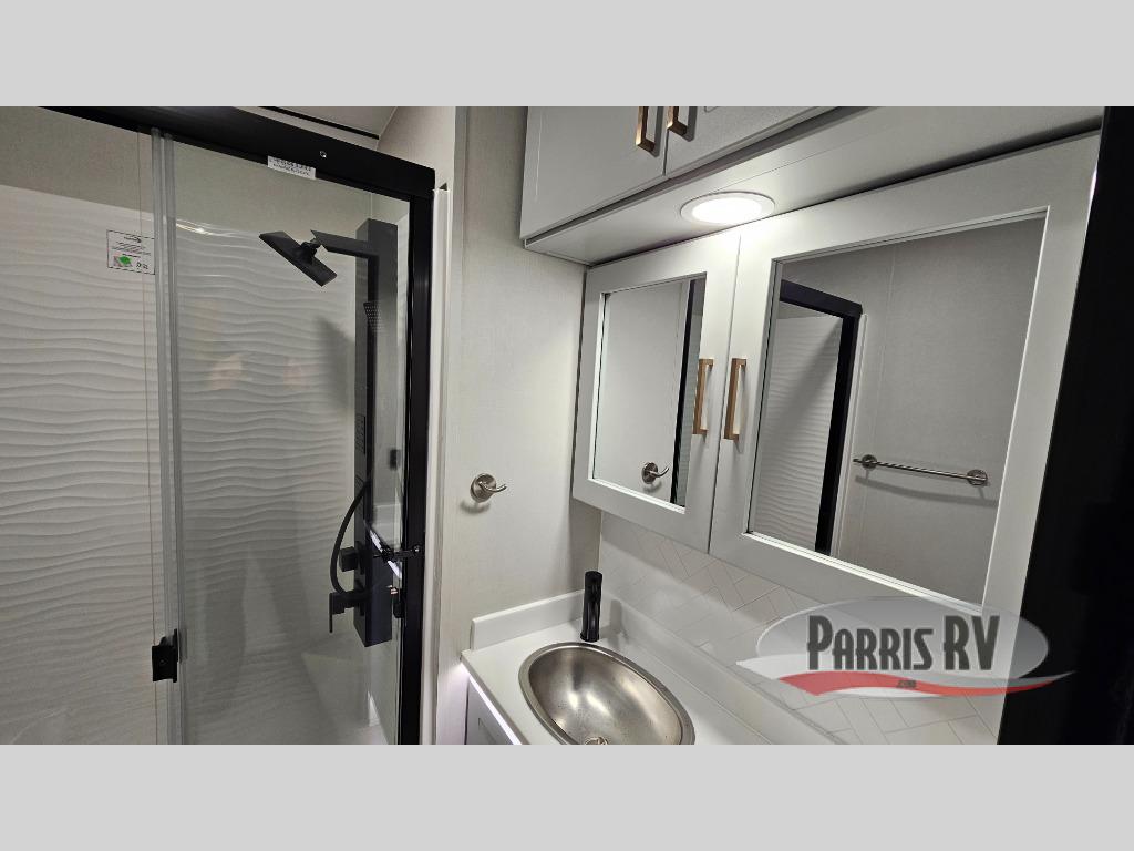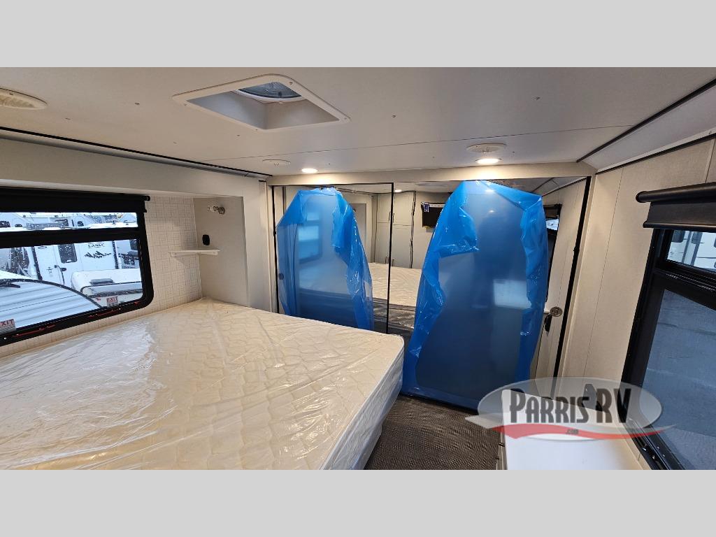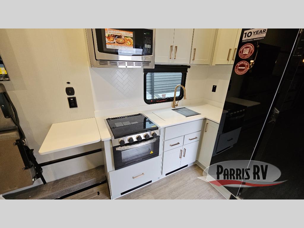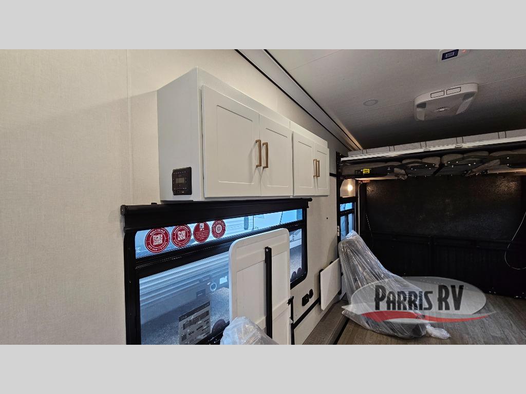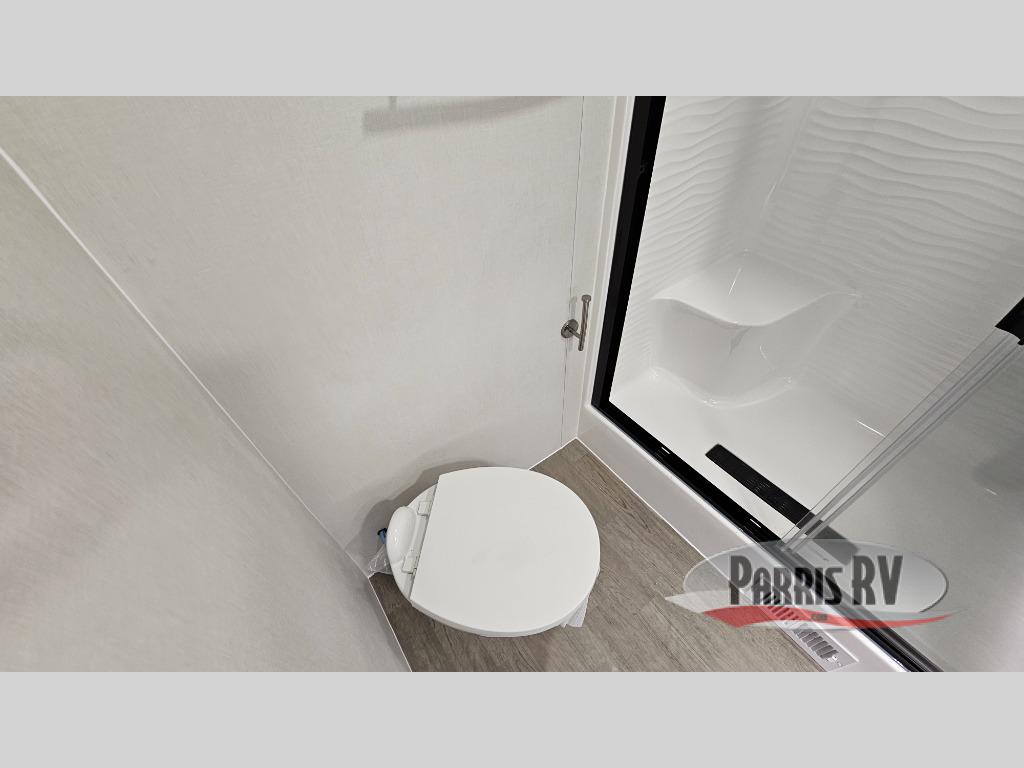 Start a new adventure in this spacious toy hauler that can sleep 2-12 depending on the options you choose to add! Once your toys are unloaded using the cableless rear ramp door, you can head out on a trail or two. You'll find a residential queen bed with storage in the front bedroom, along with a large front closet and TV prep if you want to add a television. The full bath includes a spa/jet shower fixture that is sure to be nice after a day of riding the trails, and there is a glass shower door for added luxury. Head to the kitchen where you can whip up a meal for your crew on the LP three burner cooktop or in the convection microwave, and you can dine at the dinette with four chairs. If you'd like to get some fresh air, take your plate outdoors to sit under the power awning with a light strip!