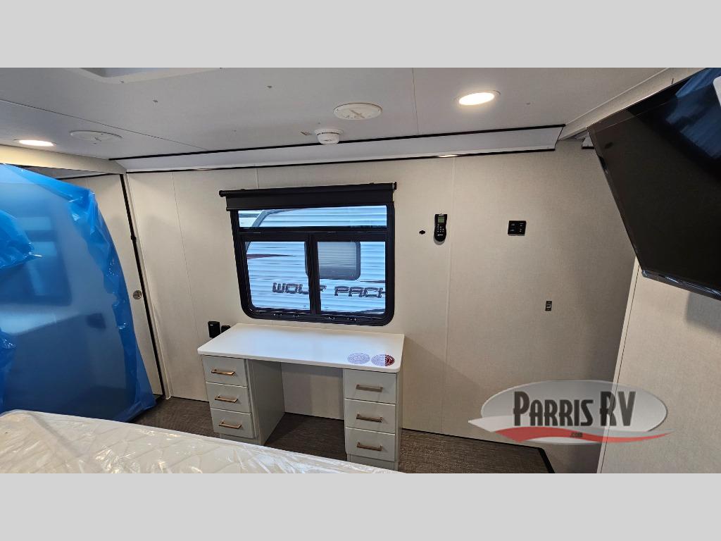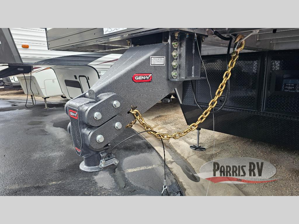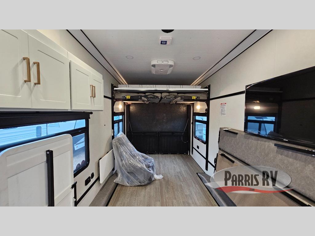 With any PLA 750 toy hauler fifth wheel by ATC Trailers, you will find a durable unit made to last thanks to the 6-sided welded aluminum frame, enclosed underbelly, composite ramp door, and more! The LifeTrac modular component system lets you configure your garage how you need it, and there are also tie-downs with three rows of Airline tracks with covers and an exterior pass-through storage for all the riding gear! Inside, you'll enjoy aluminum cabinets with solid surface countertops in the kitchen and bath, dimmable can ceiling lights, composite with commercial-grade vinyl flooring, and a porcelain toilet to name a few stand-out features. You can further customize your toy hauler by adding one or more of the available options, such as a deck package, 36 gallon fuel station, happijac sofa sleepers, an exterior shower, and more!