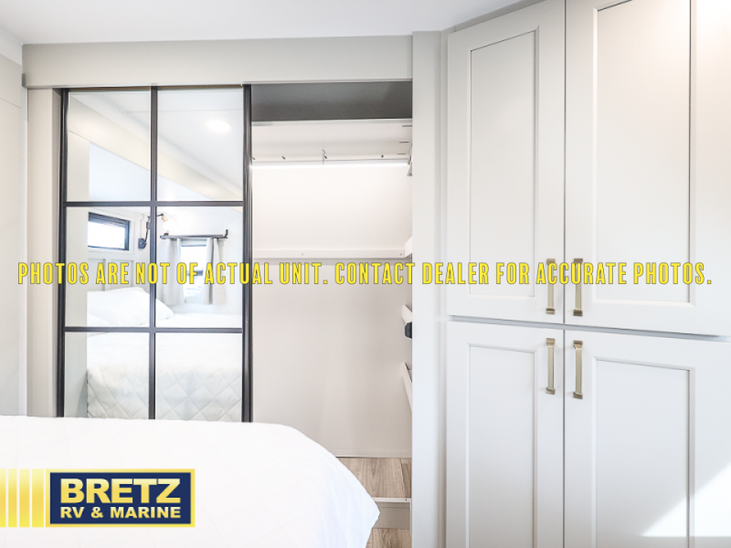 Whether you use this toy hauler to haul your favorite ride-on toys or as a mobile office, you're sure to love every inch of it! The 14' separate garage includes a Fold-N-Stow table and independent dual sofas, along with a fullĀ bath and a loft/storage with a twin bed for more sleeping space. The middle kitchen is every chef's dream with its GE appliances, kitchen island, and convenient features, such as pull-out trash bins and a cutting board, a pull-down knife rack and utensil tray, and a pull-out pantry/utility closet! Right next to the kitchen is the living room with a L-sofa with four modes, a 65" Phillips Smart TV and a fireplace, plus a convertible dining table/L-desk where you can dine or get some work done. You'll love the second full bath up front close to the private bedroom, and here, you'll find a king bed slide out, under-bed storage drawers and motion lights, a walk-in closet with cordless vacuum prep, and a sliding dresser top with hidden storage for valuables. There is also washer and dryer prep in the bedroom and garage, making this toy hauler full-time capable!