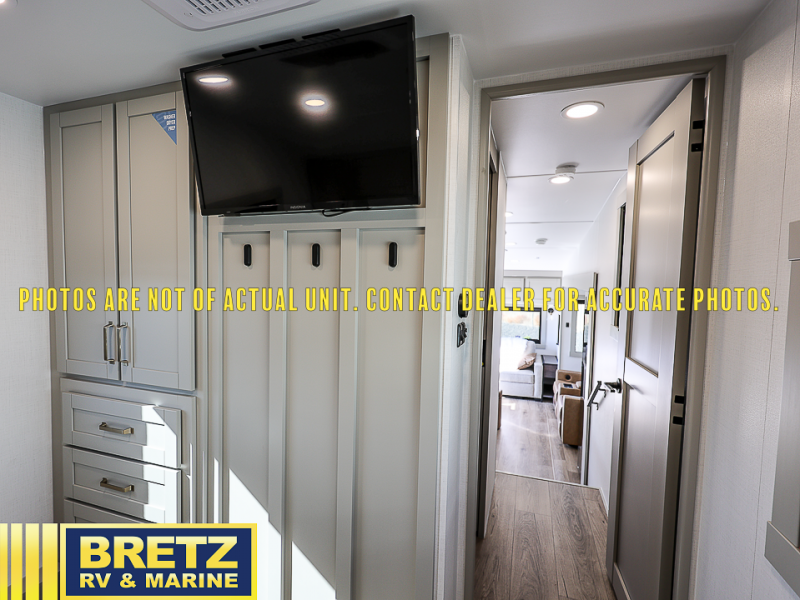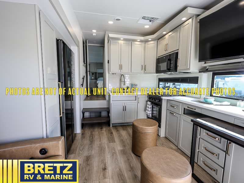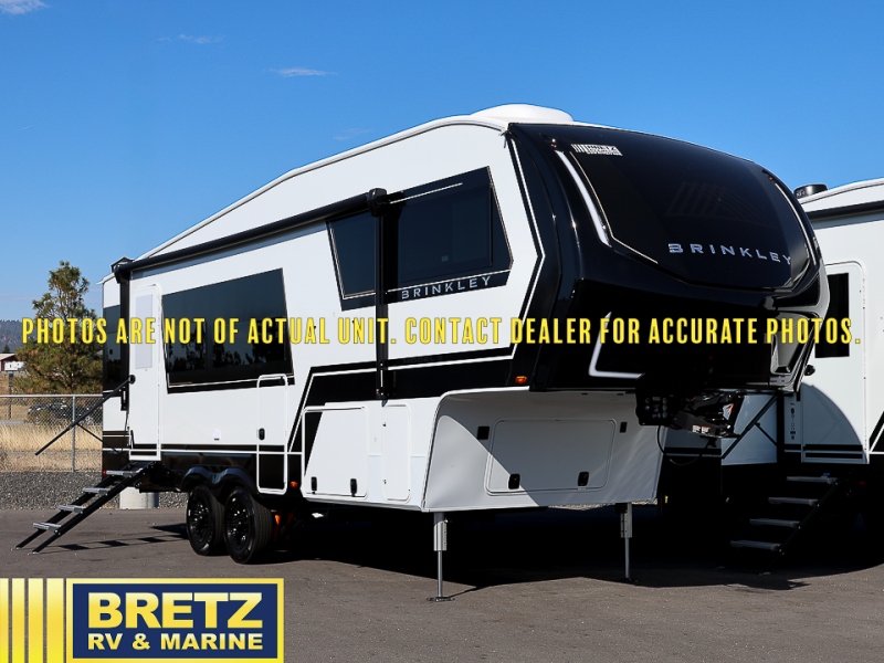 The Brinkley mid-profile Model Z fifth wheels bring you clean lines and an upscale look with plenty of style and exciting new features like the industry first brass plumbing connections. These units also feature an automotive grade front cap, plenty of exterior storage, dual exterior hot and cold showers, and wide stance leveling jacks for easy set up. Residential frameless windows provide a clean look and beautiful views, and ample electrical outlets and USB/USB-C outlets allow all of your electronics and appliances to easily be used and charged.