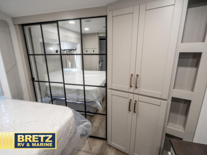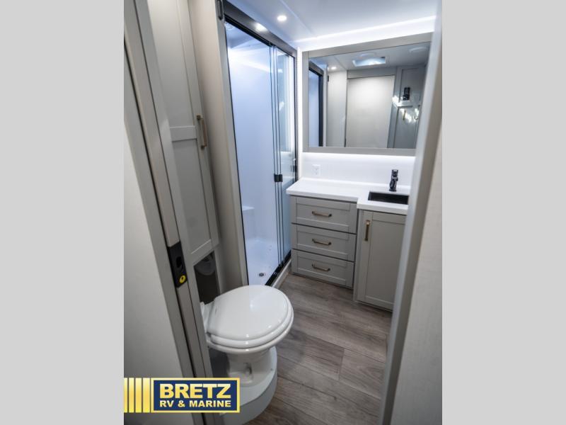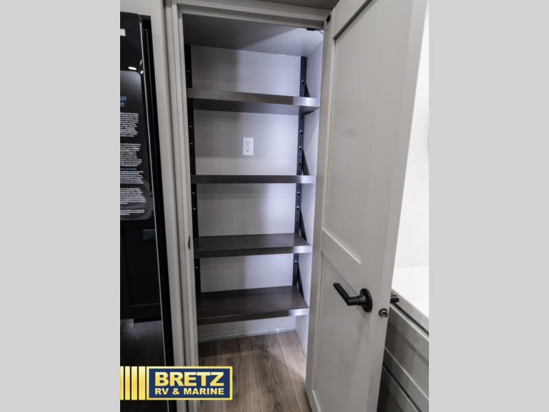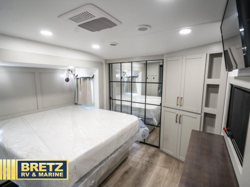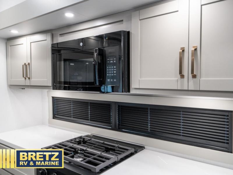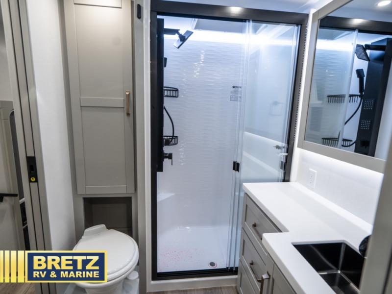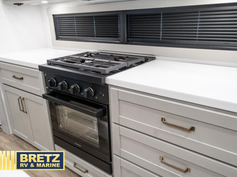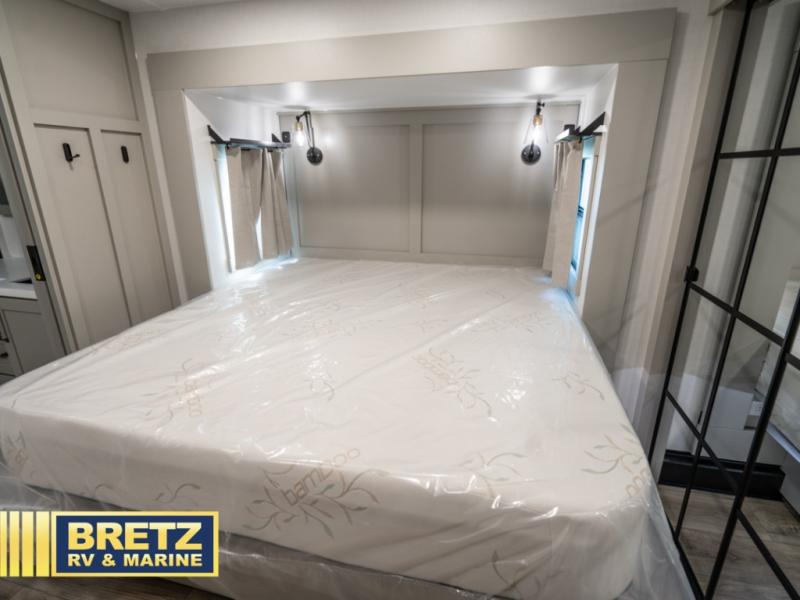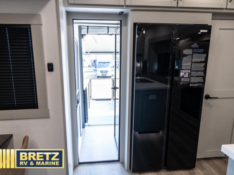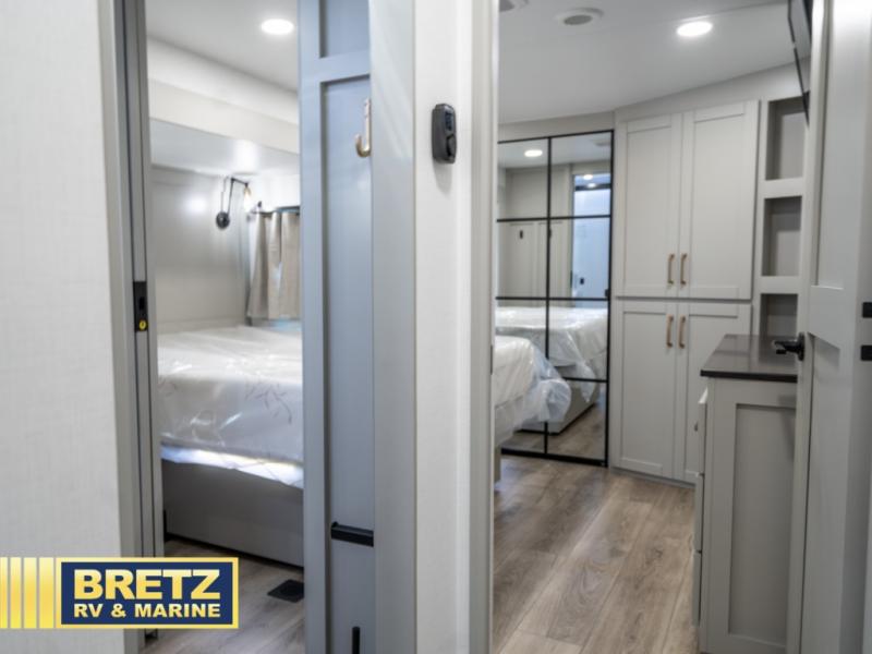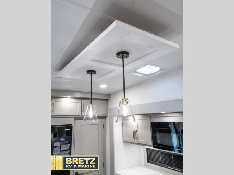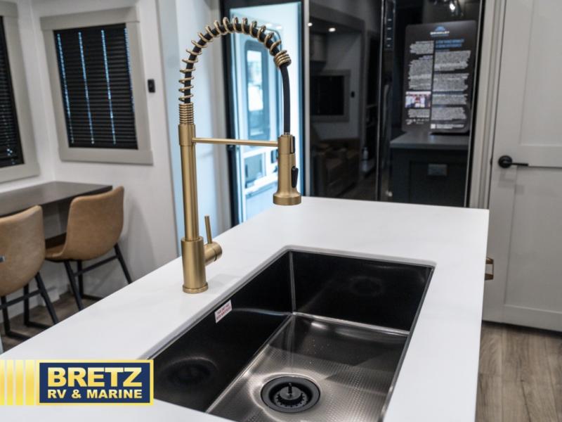 The Brinkley mid-profile Model Z fifth wheels bring you clean lines and an upscale look with plenty of style and exciting new features like the industry first brass plumbing connections. These units also feature an automotive grade front cap, plenty of exterior storage, exterior hot and cold showers, and wide stance leveling jacks for easy set up. Residential frameless windows provide a clean look and beautiful views, and ample electrical outlets and 6 USB/USB-C outlets allow all of your electronics and appliances to easily be used and charged.