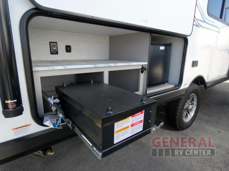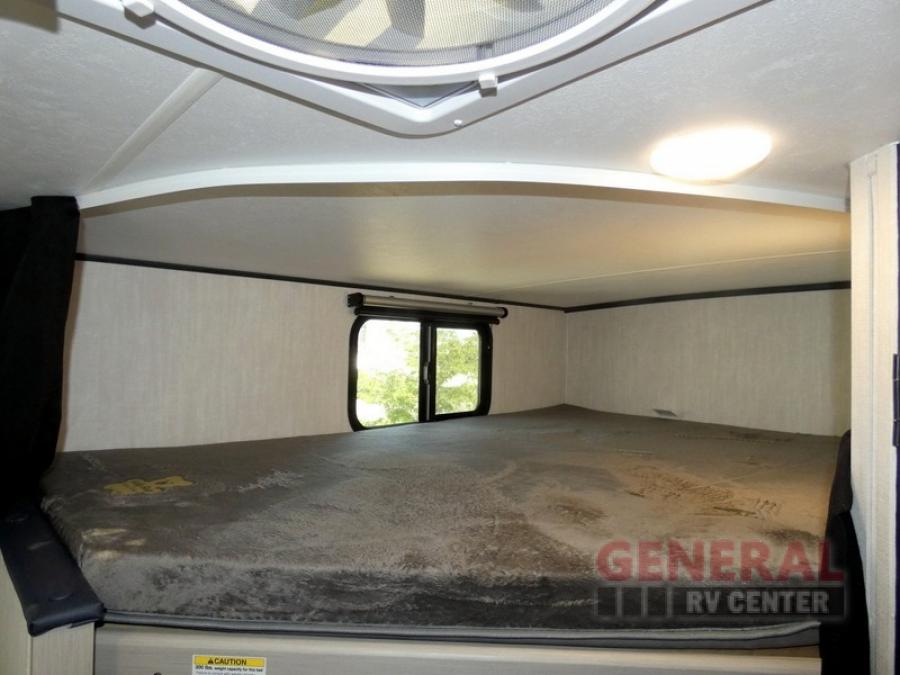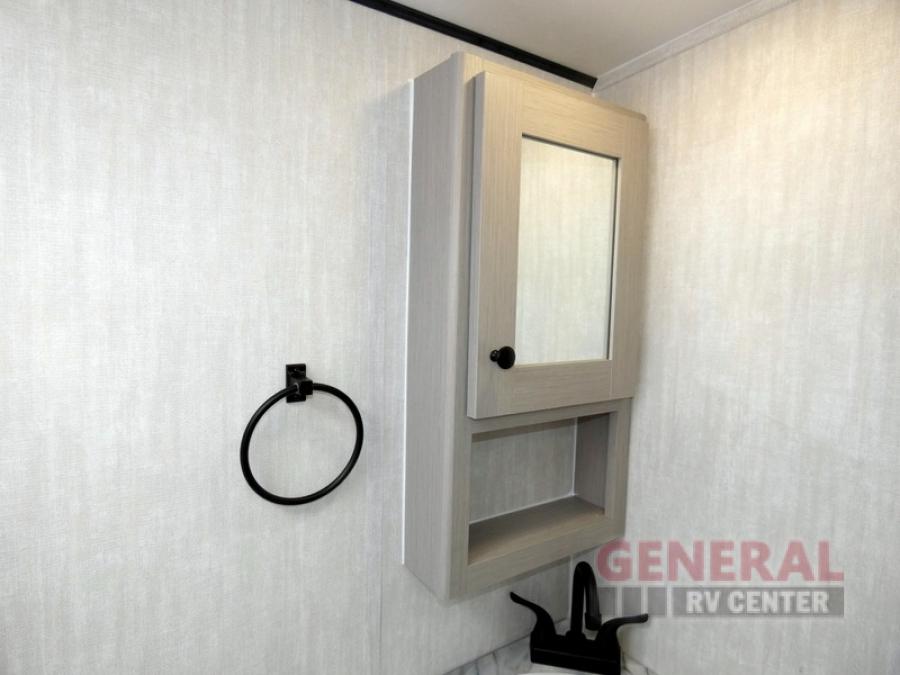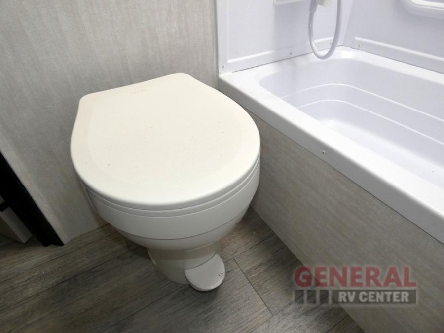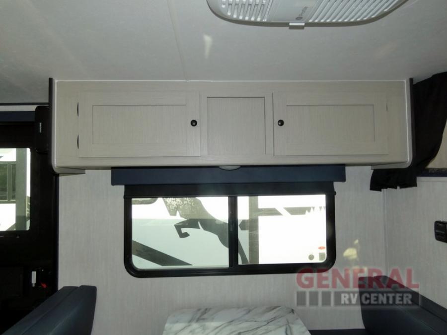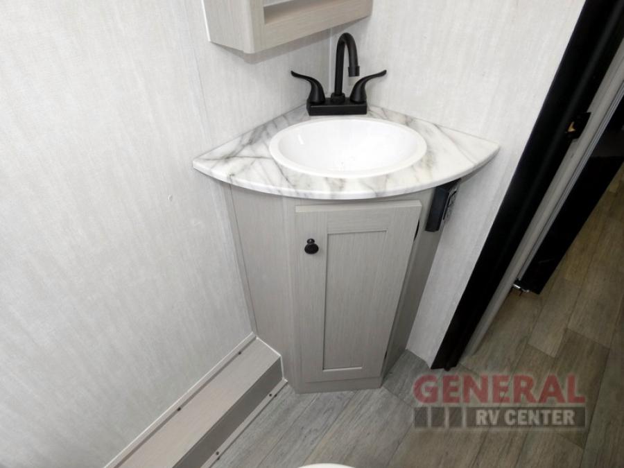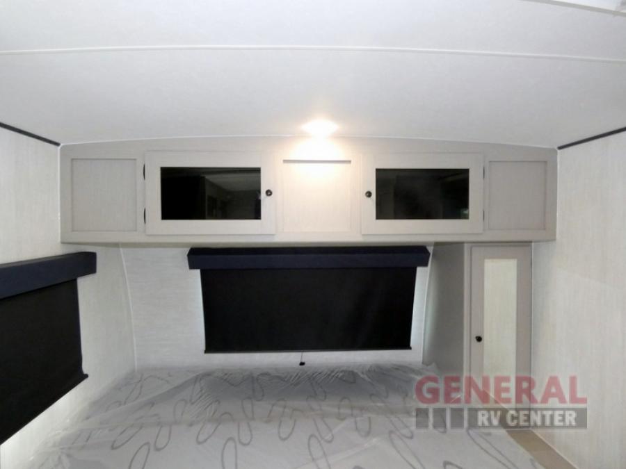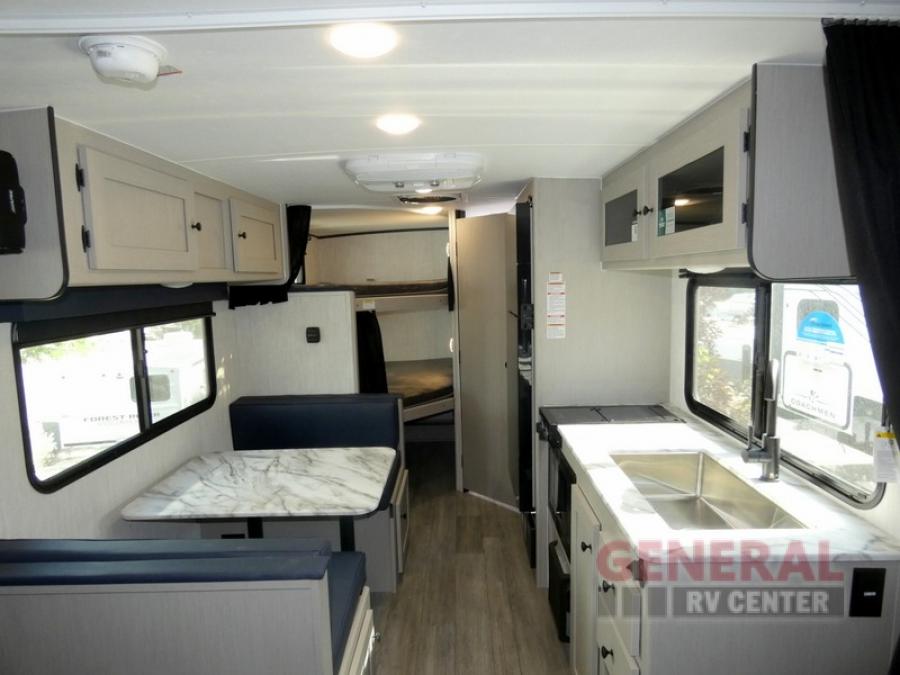 This travel trailer offers versatility with a front Murphy bed depending on your needs. There is a rear corner double bed bunk above a lower flip up double bed and a booth dinette that can transform into an extra sleeping space when you're not using it to enjoy a meal or play a card game. Everyone can stay clean with tub/shower in the rear corner bathroom and keep their bellies full with the two burner cooktop and 8 cu. ft. 12V refrigerator. You can even cook outdoors with the exterior camp kitchen while staying protected by the power awning with LED lighting!