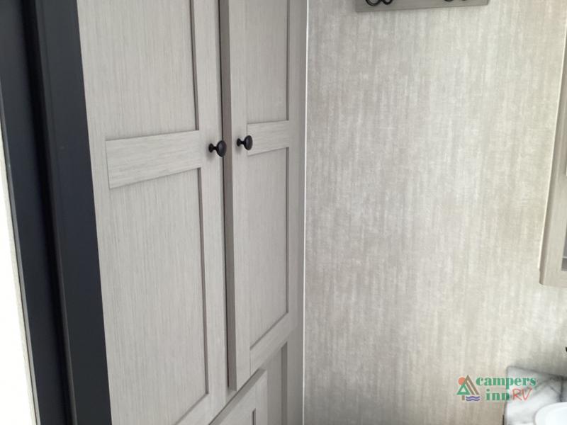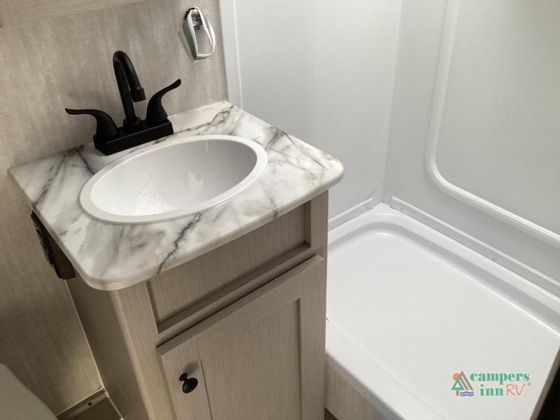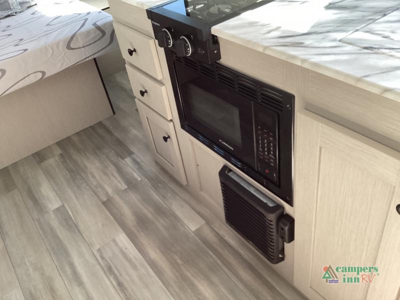 Outfitted with a tankless on-demand water heater, LED lighting throughout, a hot/cold exterior shower, and multi-speed vent fan for streamlined convenient camping.